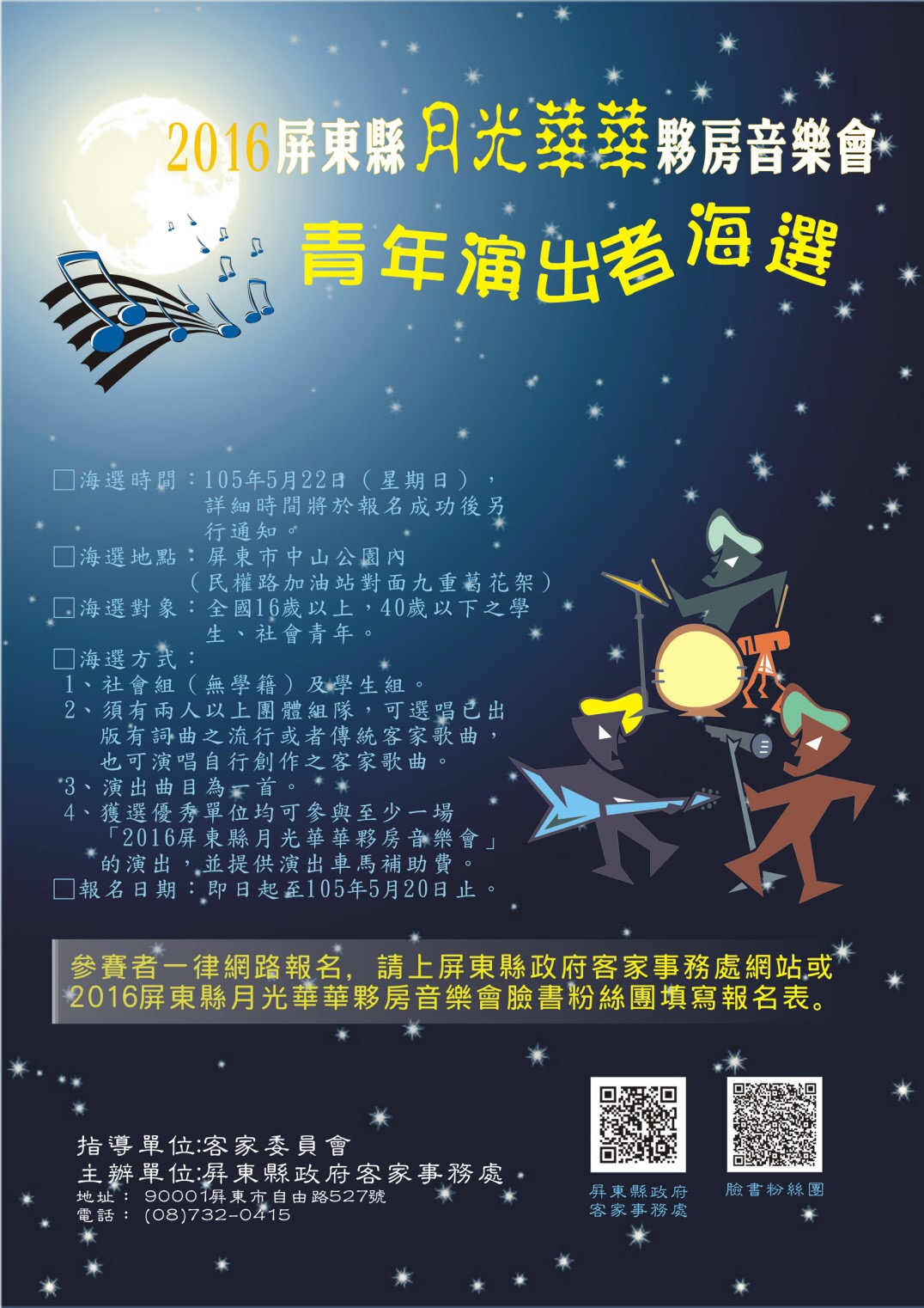 | 2016/05/04 轉知「2016屏東縣月光華華夥房音樂會--青年客家演出者海選」活動 |
