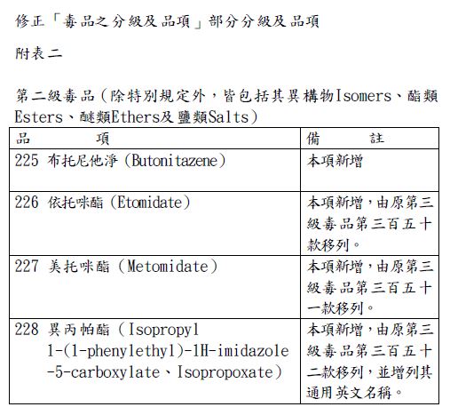 法務部函報依「毒品危害防制條例」第2條第3項規定應行公告調整、增減之「毒品之分級及品項」部分分級及品項,業經本院於中華民國113年11月27日以院臺法字第1131031622號公告修正,並自113年11月27日生效。