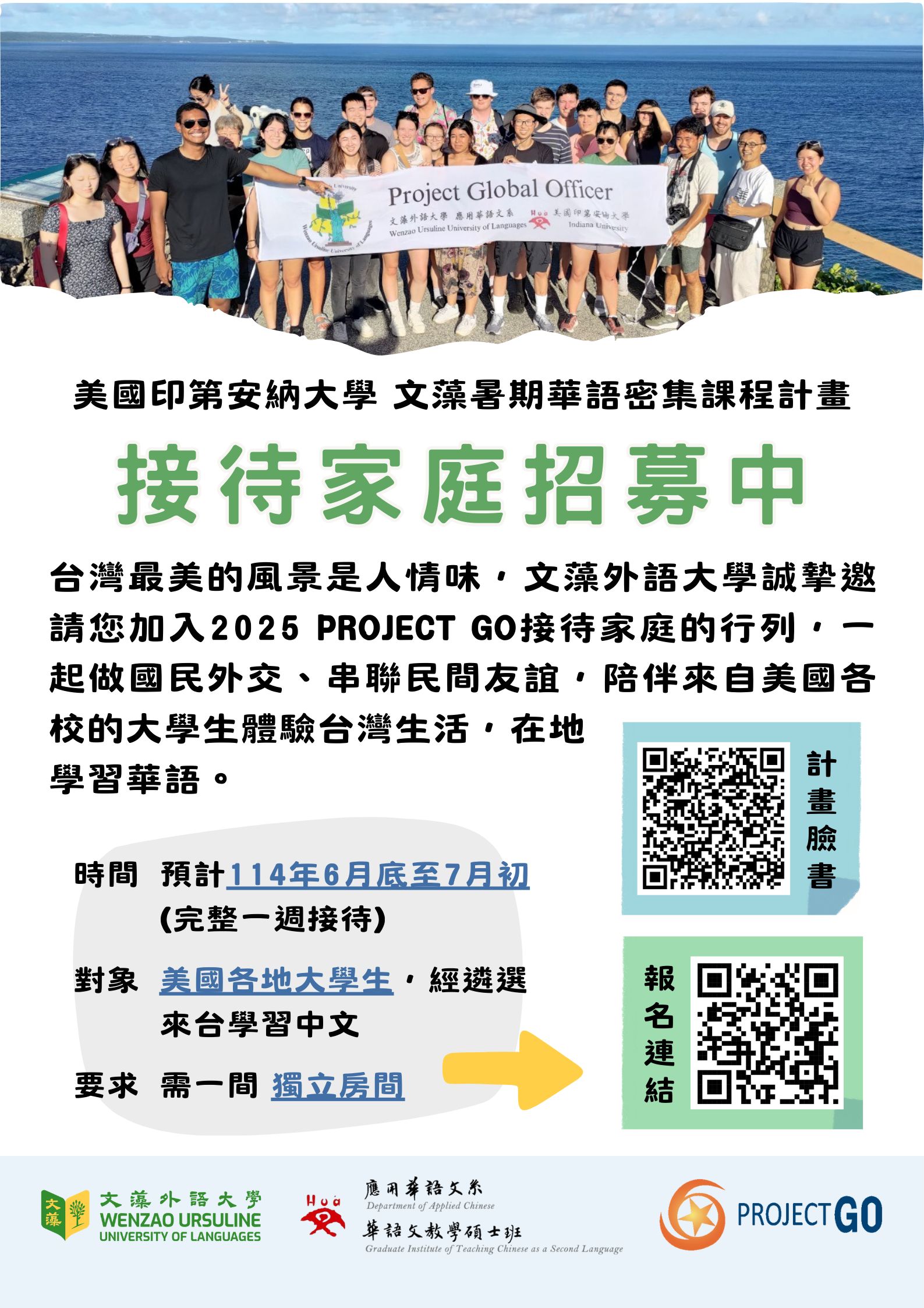 2025文藻暑期華語密集課程計畫,預計招募至少16組招待