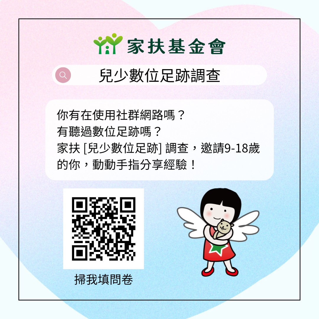 邀請兒童及少年填寫家扶基金會【兒少數位足跡調查】問卷。