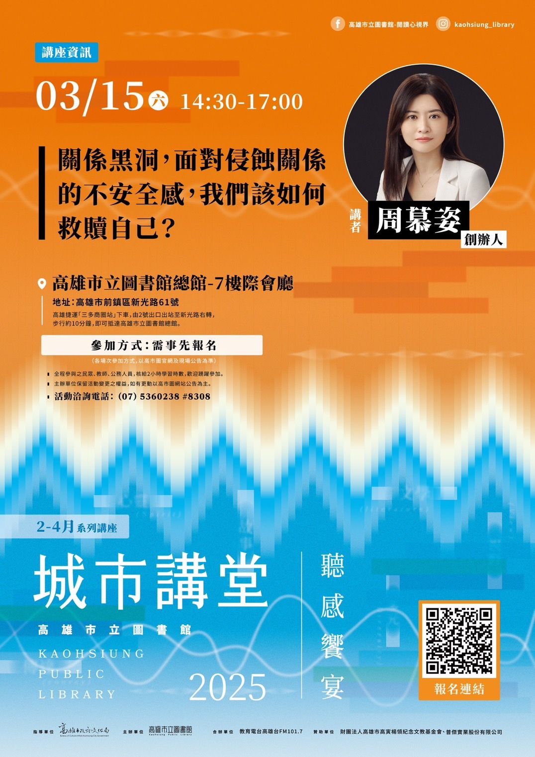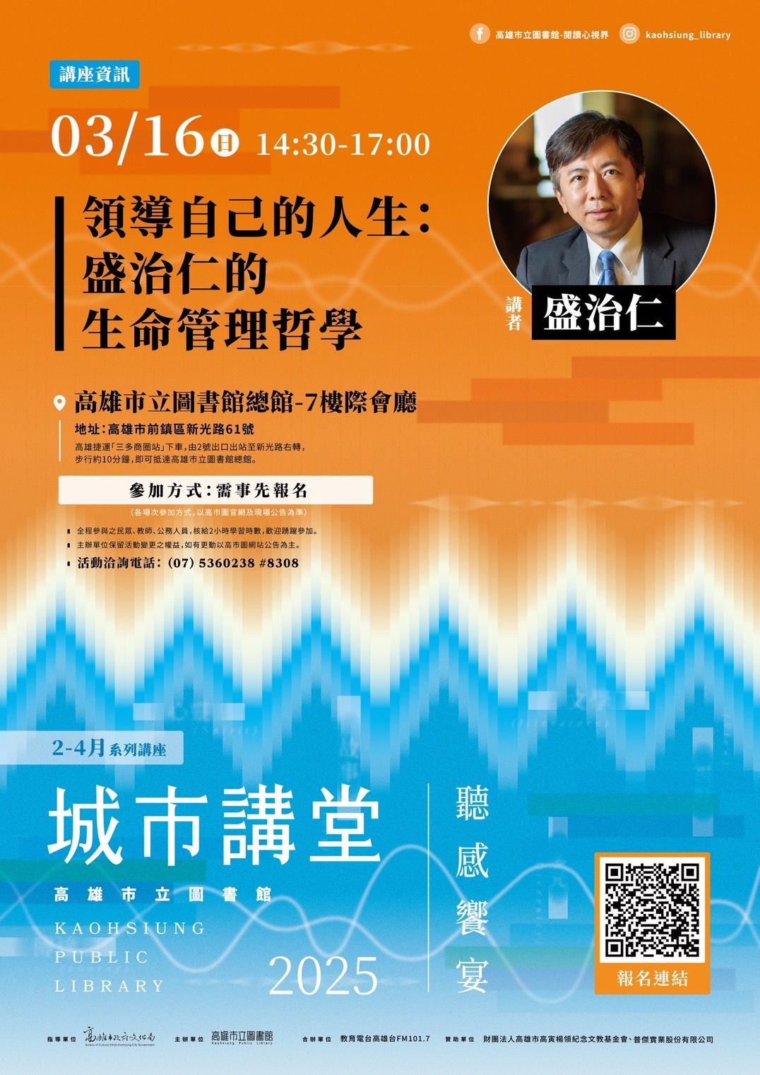 | 2025/02/14 轉知高雄市立圖書館辦理「2025城市講堂」3月份講座活動 |