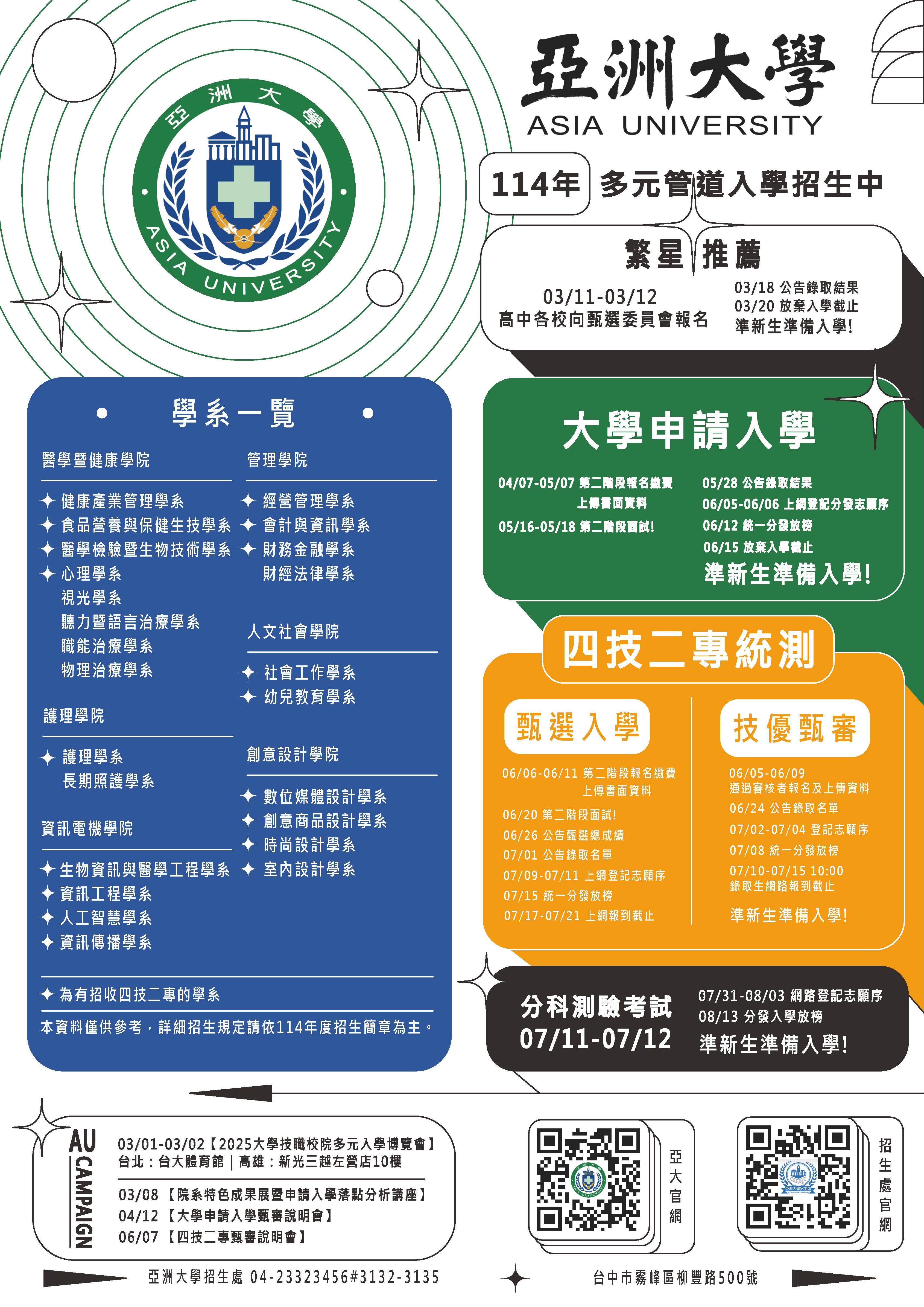 | 2025/02/17 「2025亞洲大學院系特色成果展暨大學申請入學落點分析講座」 |