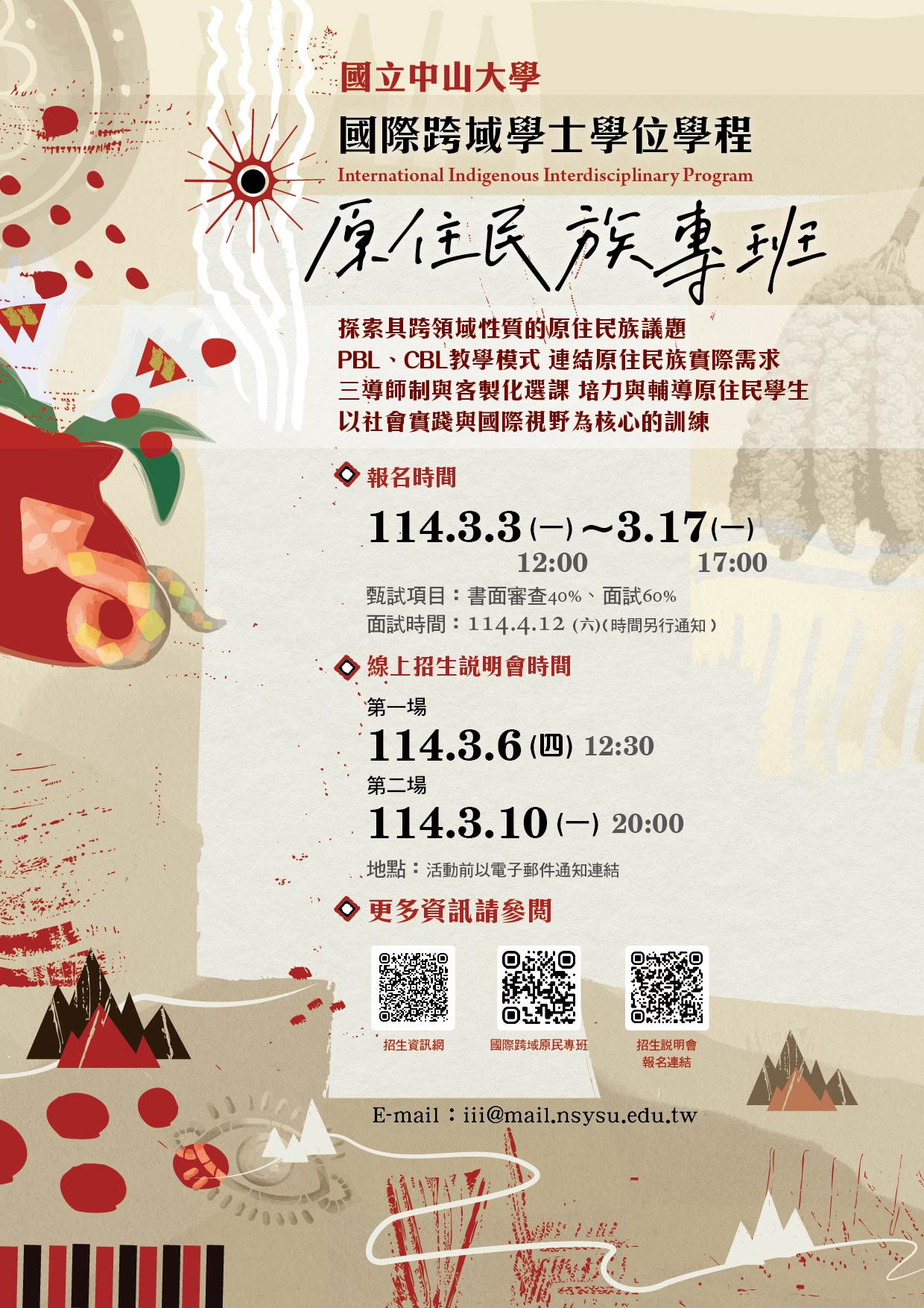 國立中山大學114學年度國際跨域學士學位學程原住民族專班
