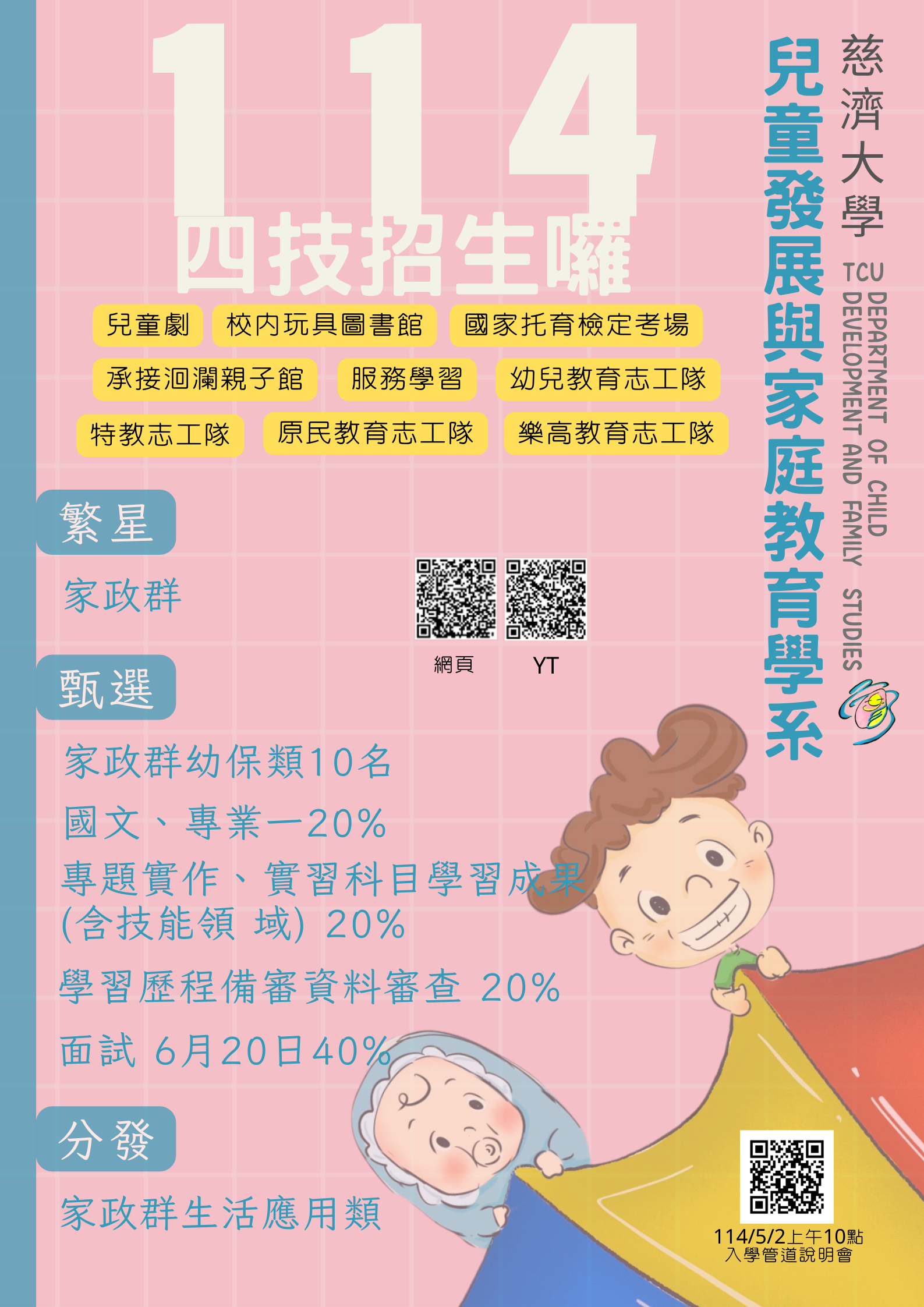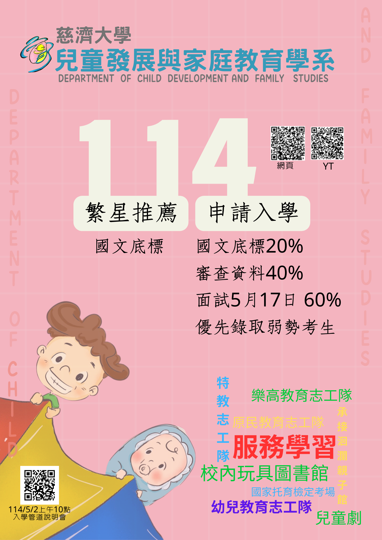財團法人慈濟大學114學年度兒童發展與家庭教育學系招生資訊