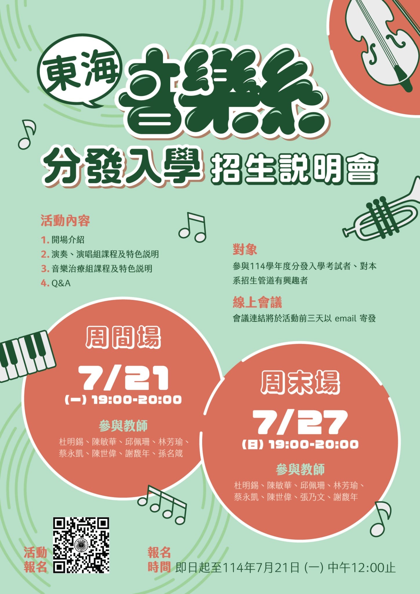 | 2025/07/16 東海大學音樂系分發入學招生說明會 |