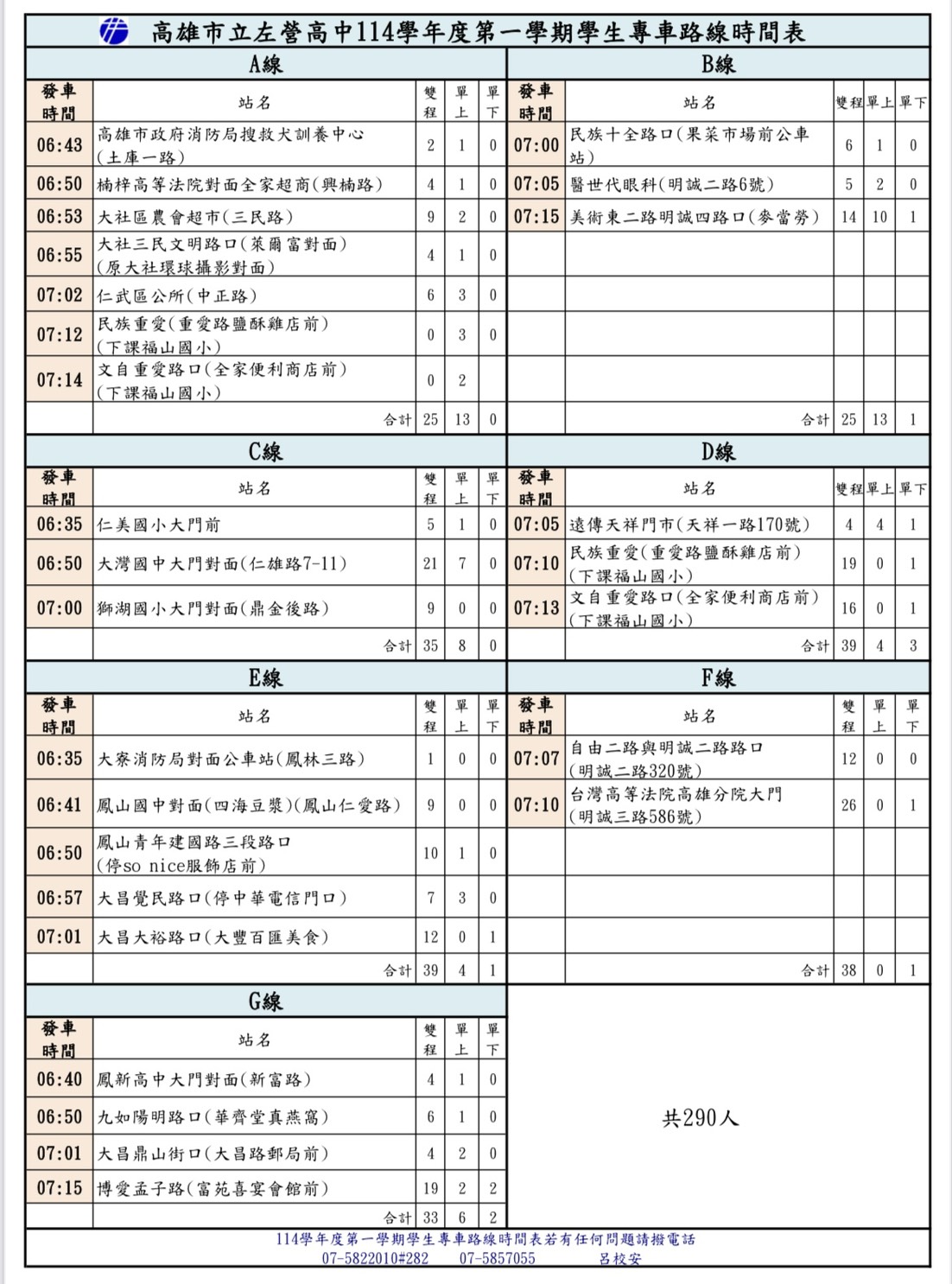 | 2025/08/17 [0825更新]114學年第1學期學生專車座位表/路線時間及搭乘學生名冊(ABCDEFG計7線) |