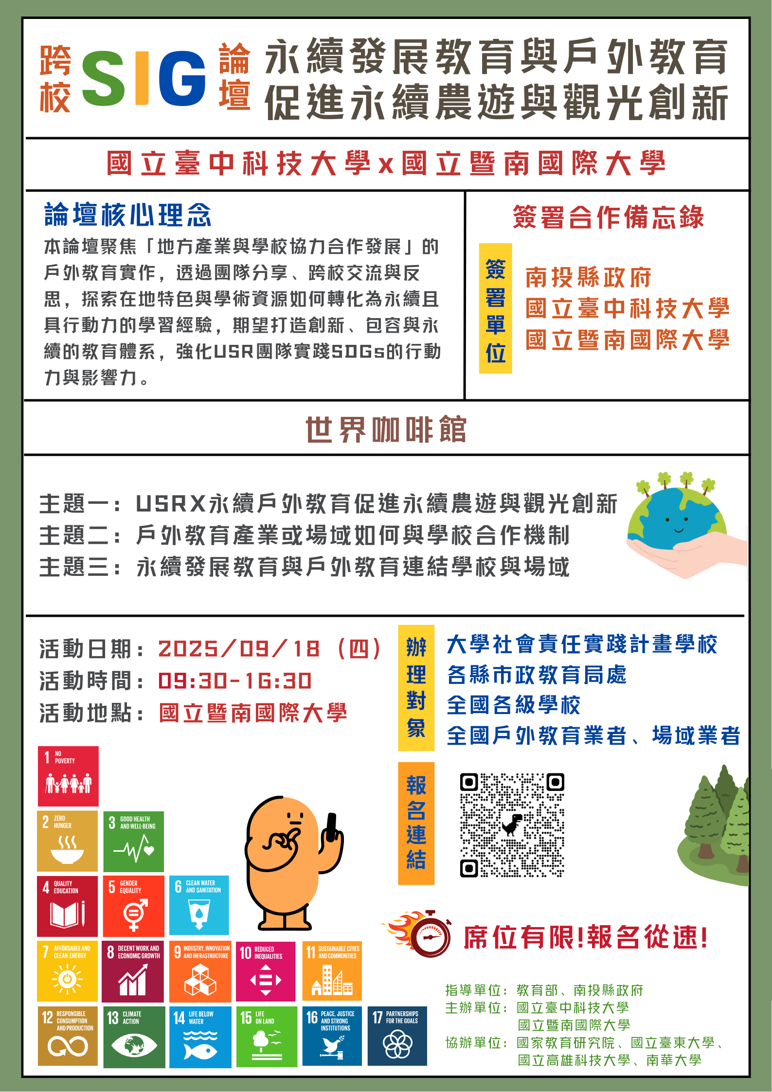 | 2025/08/26 「永續發展教育與戶外教育促進永續農遊與觀光創新」USR跨校SIG論壇 |