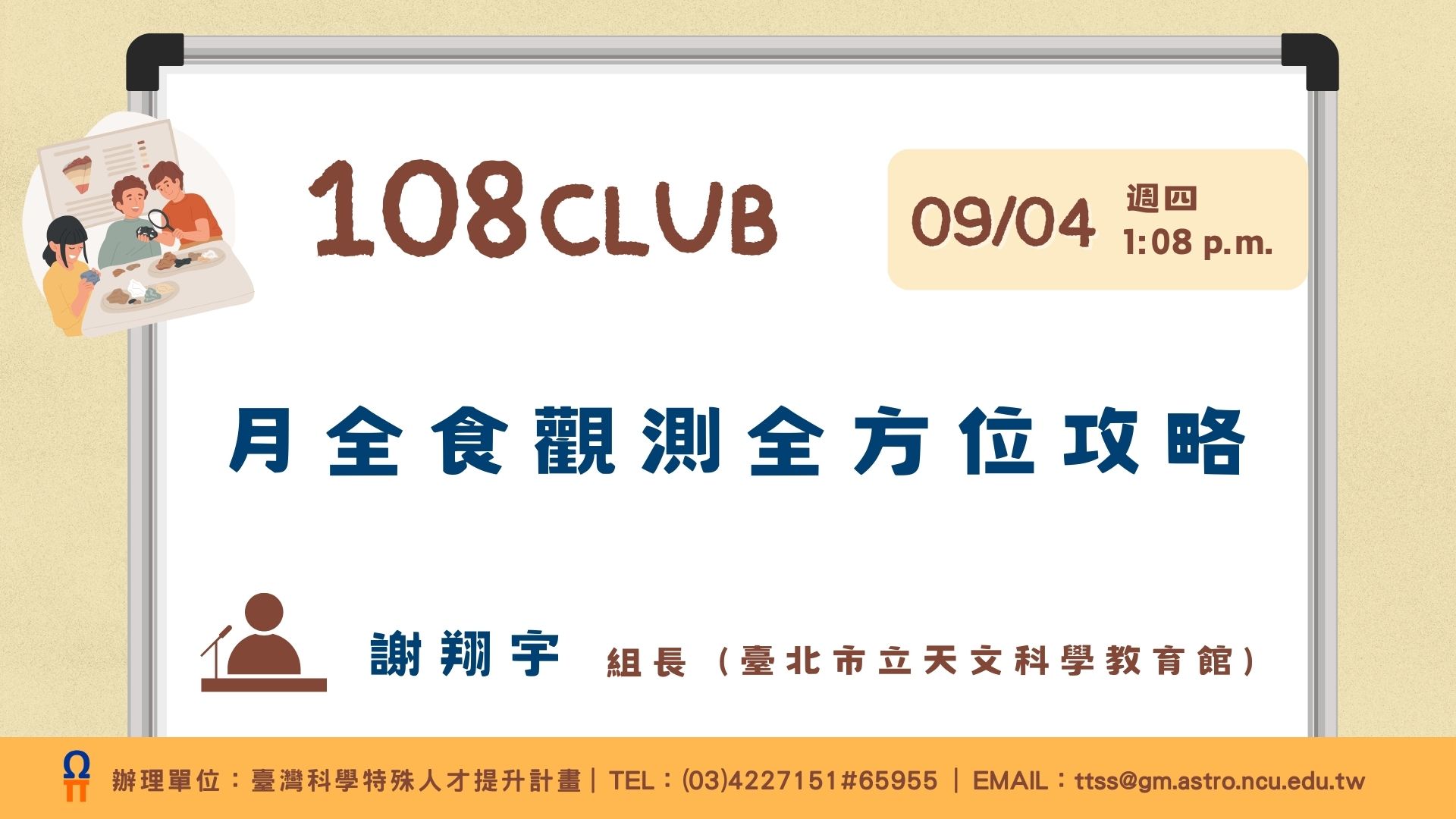 | 2025/09/03 國立中央大學 線上講座:《108俱樂部》—— 「月全食觀測全方位攻略」 |