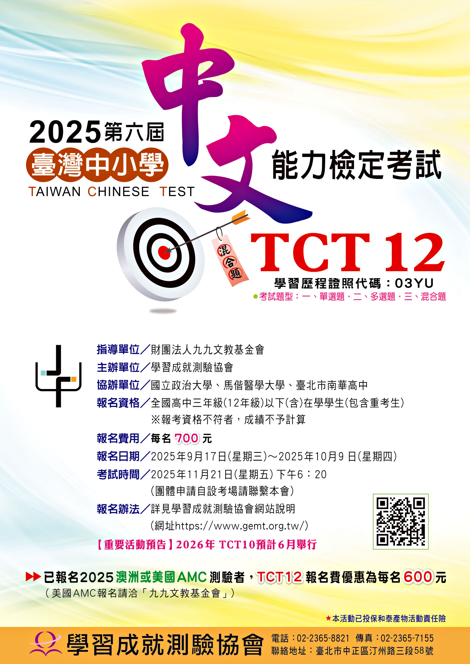 | 2025/09/09 「2025臺灣中小學中文能力檢定考試」 |