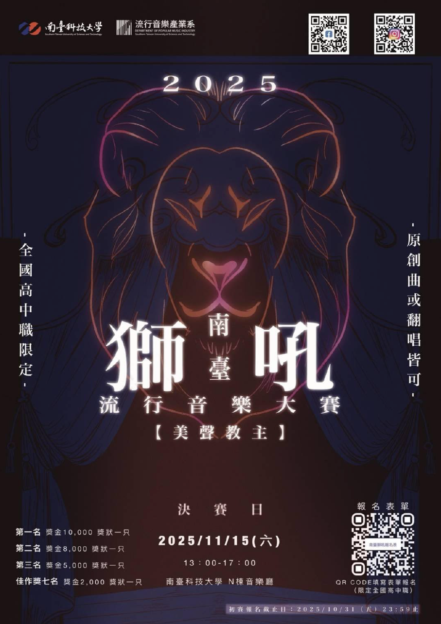 | 2025/09/15 第九屆「南臺獅吼」流行音樂大 賽 |