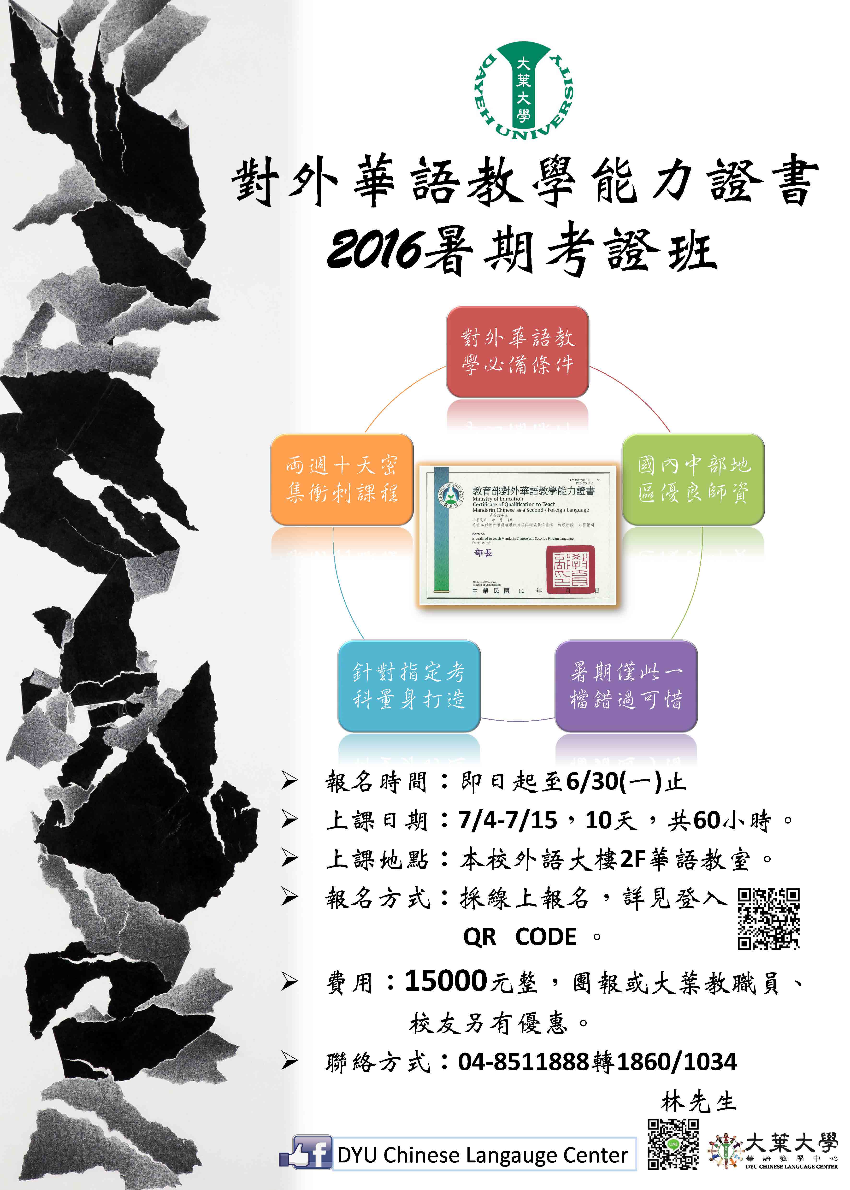 | 2016/06/27 2016大葉大學教育部對外華語教學能力考證班 |