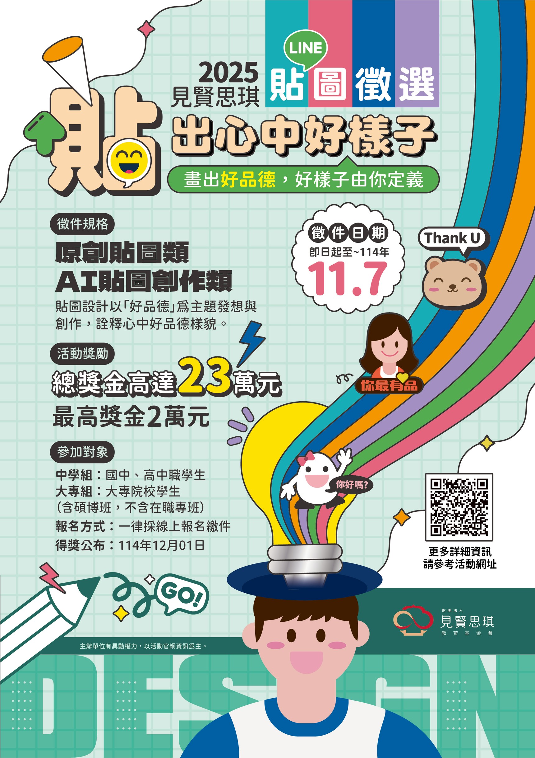 檢附「貼出心中好樣子」貼圖徵選活動簡章及海報乙份,活動資訊:https://pse.is/84tdgx。