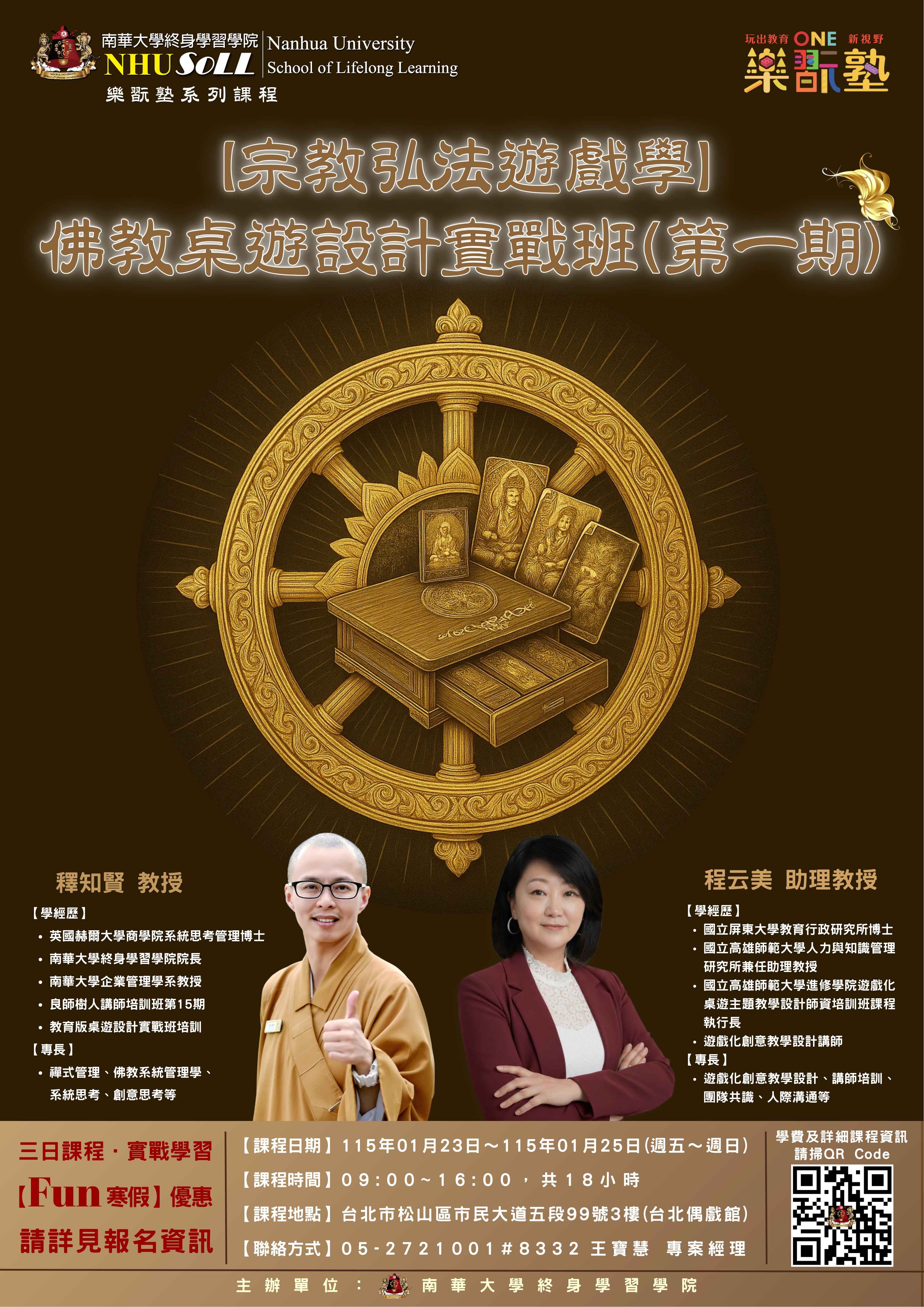 | 2025/10/01 「【宗教弘法遊戲學】佛教桌遊設計實戰班(第一期)」課程資訊 |