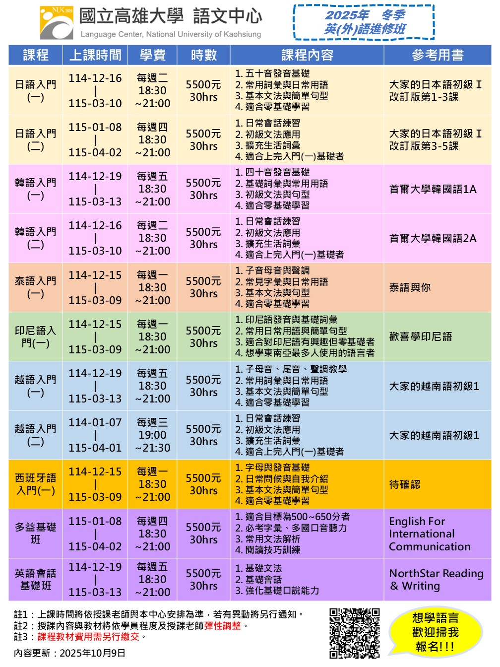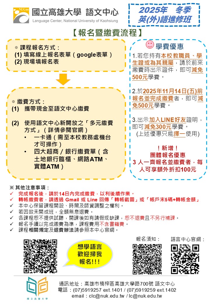 | 2025/10/20 「冬季英外語推廣課程相關資訊」 |