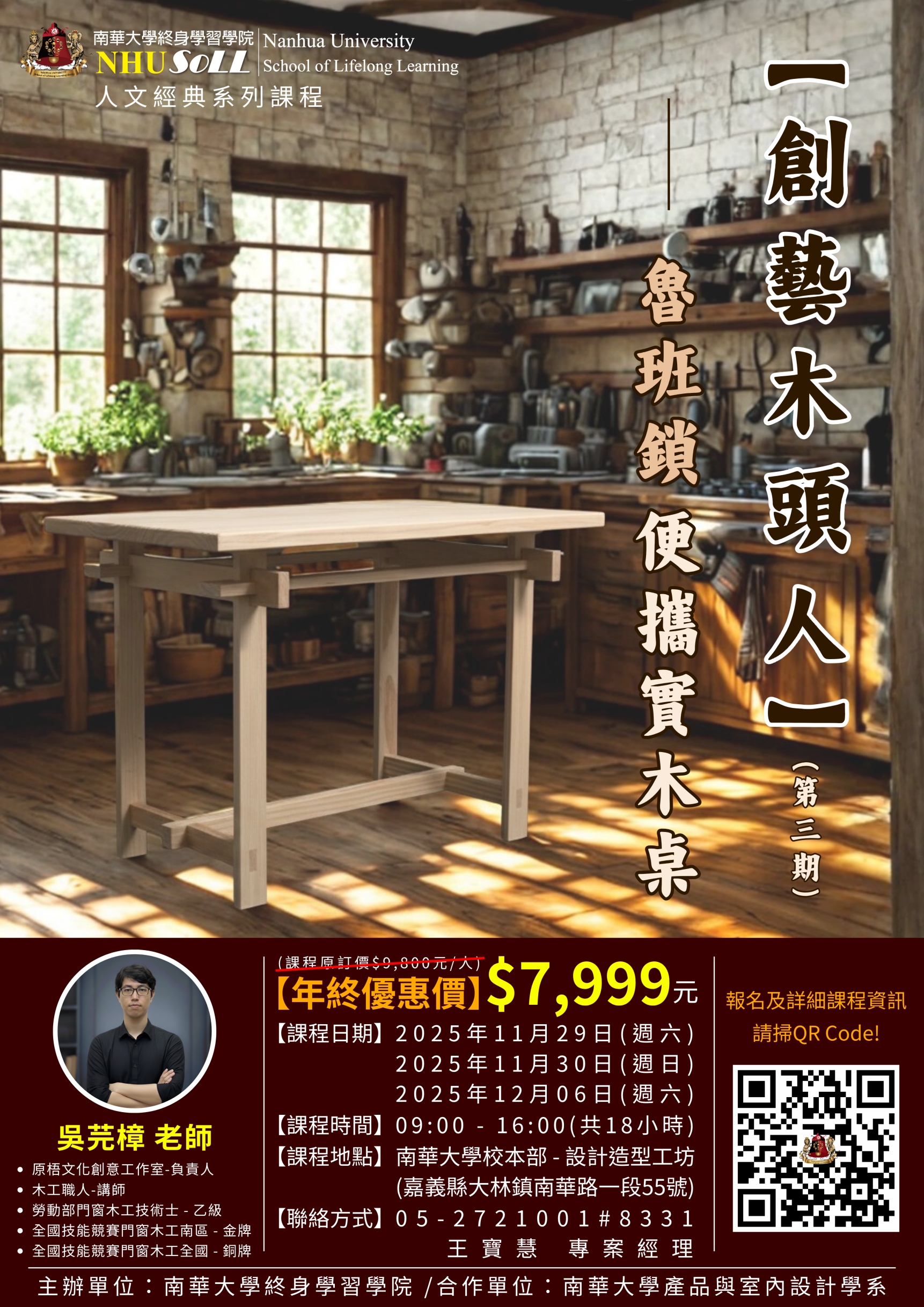 附加檔案:南華大學『114年11-12月份開辦之【創藝木頭人】(第三期):魯班鎖便擕實木桌課程資訊』1.jpg (1.98 MB)