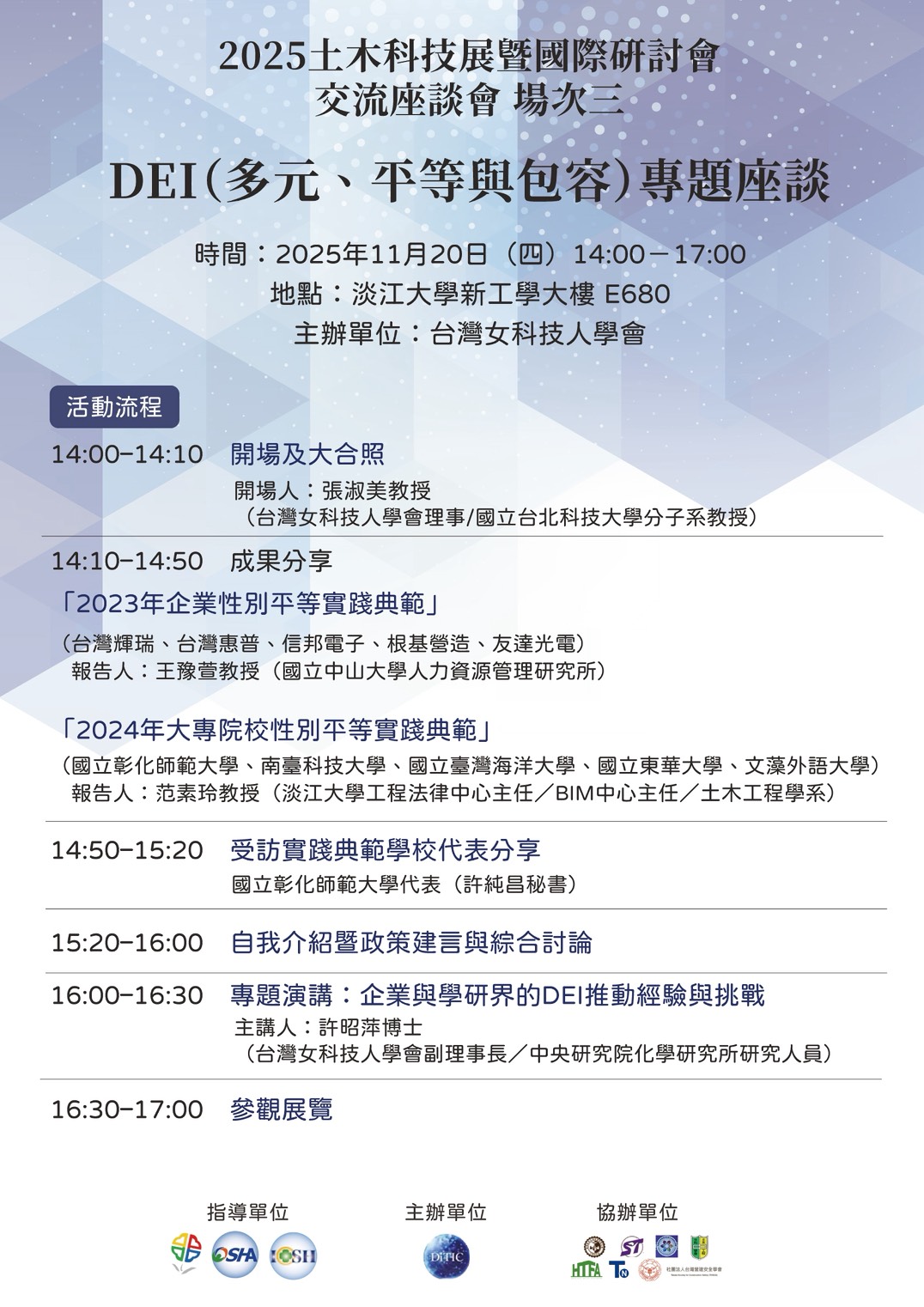 工學院工程資訊模擬與管理研究中心(BIM中心)訂 於114年11月20日(星期四)在淡水校園工學大樓E680會議室舉辦「DEI(多元平等與包容)專題座談」4.jpg