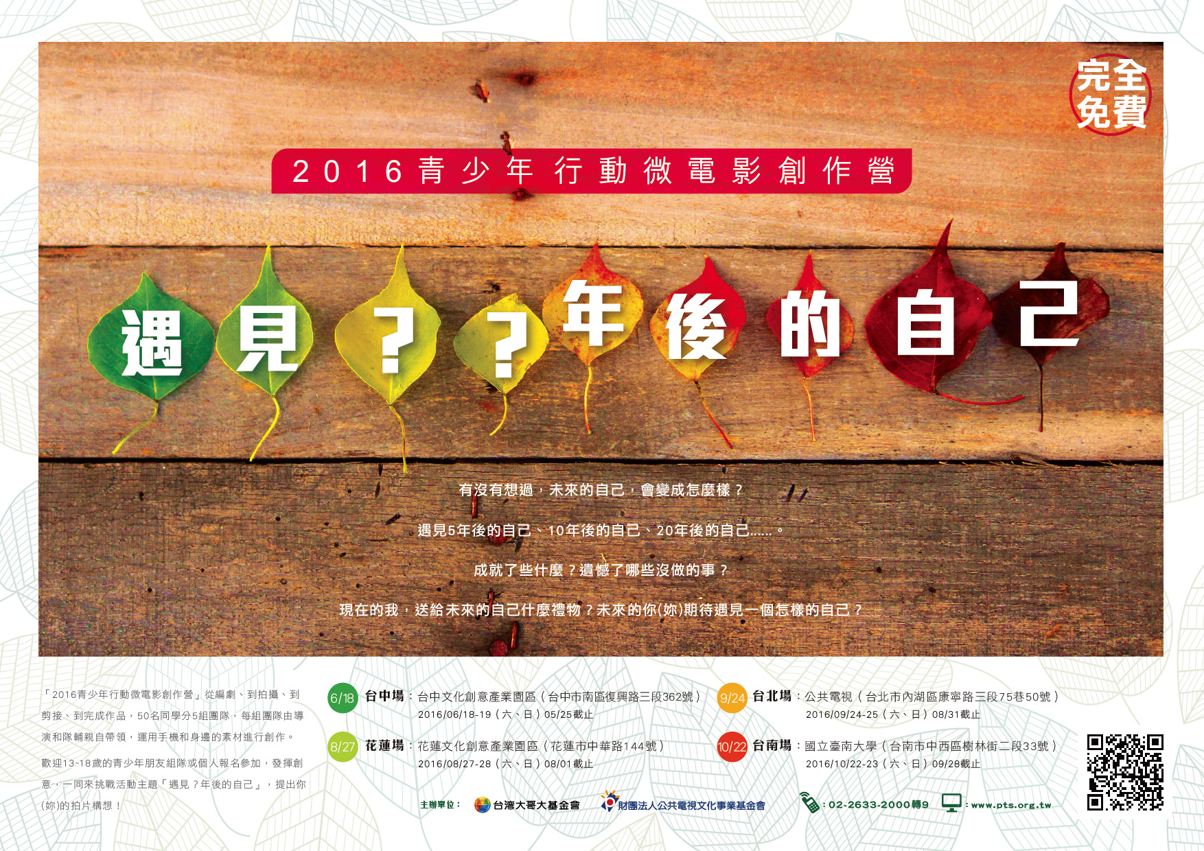 | 2016/08/24 轉知公共電視與台灣大哥大基金會合辦「遇見?年後的自己」2016青少年行動微電影創作營 |