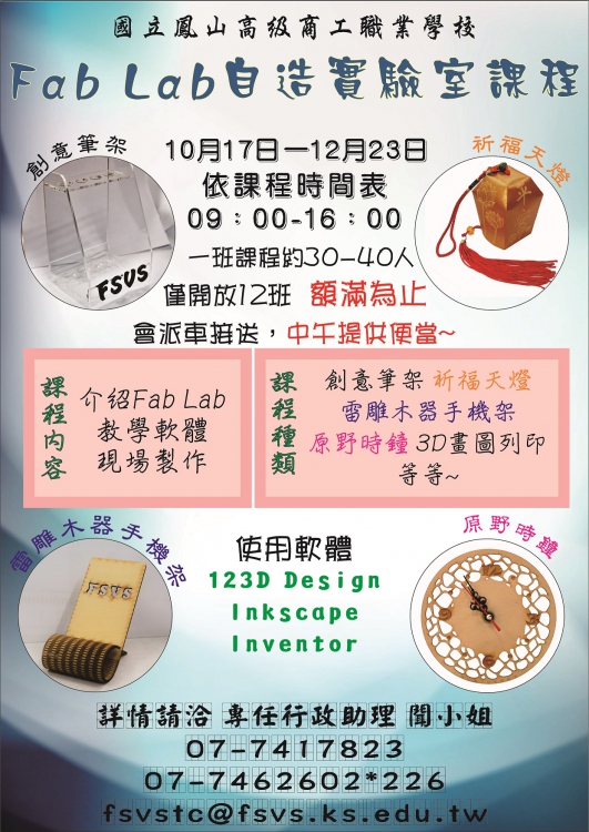| 2016/10/11 轉知鳳山商工自造實驗室推廣課程 |
