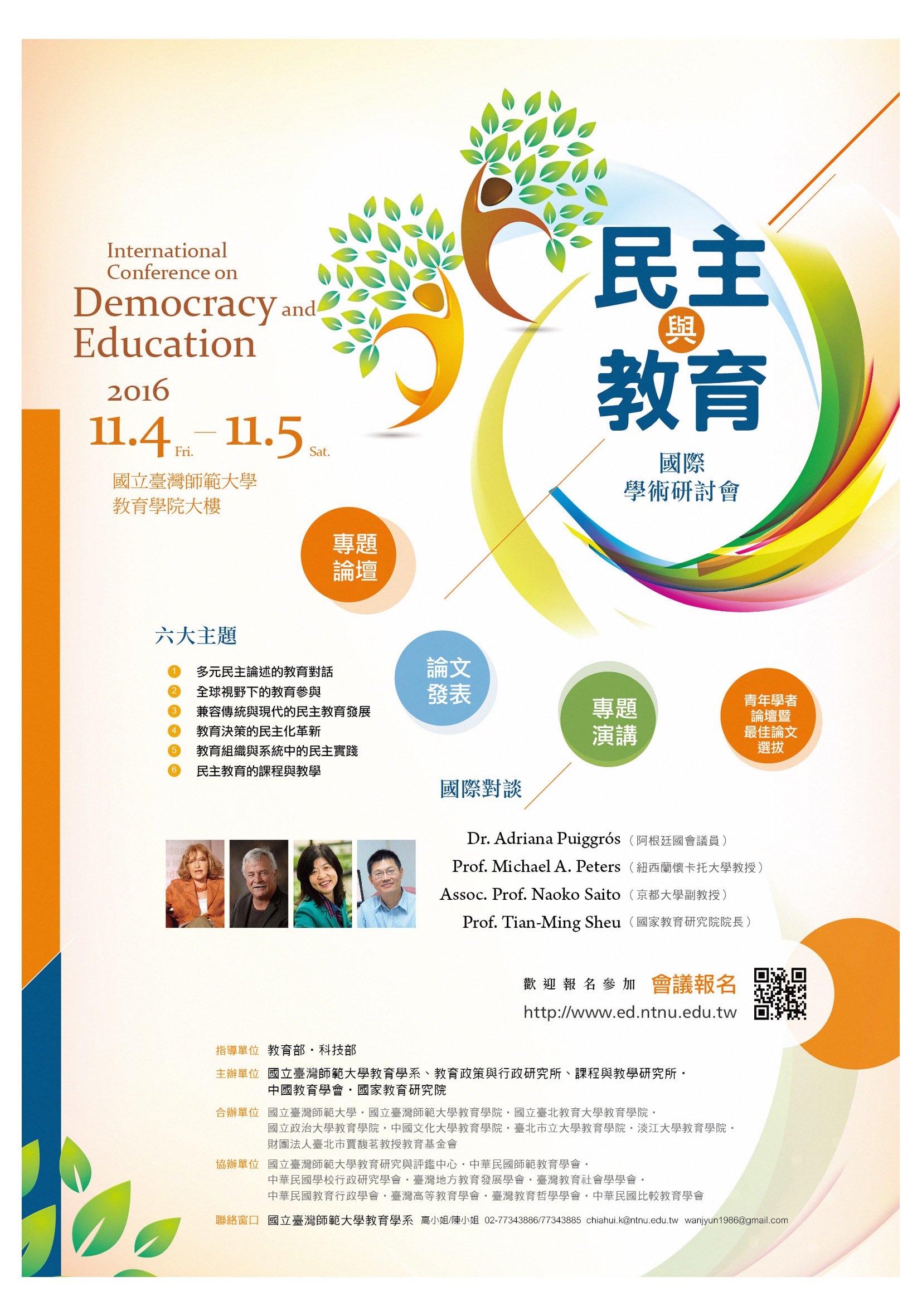 | 2016/10/14 國立臺灣師範大學舉辦「民主與教育」國際學術研討會 |