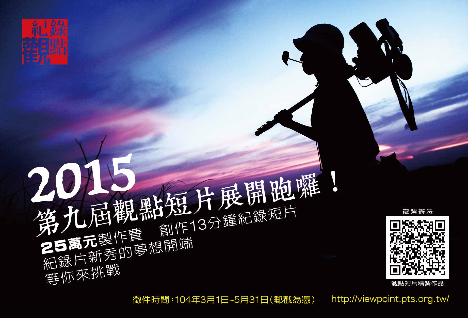 二、「2015第九屆觀點短片展」自即日起至2015年5月31日止,徵求13分鐘紀錄短片企劃案,