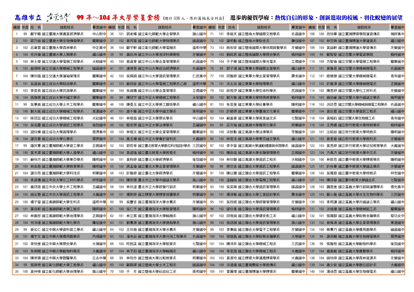 | 2015/05/01 大學繁星、左中第一 |