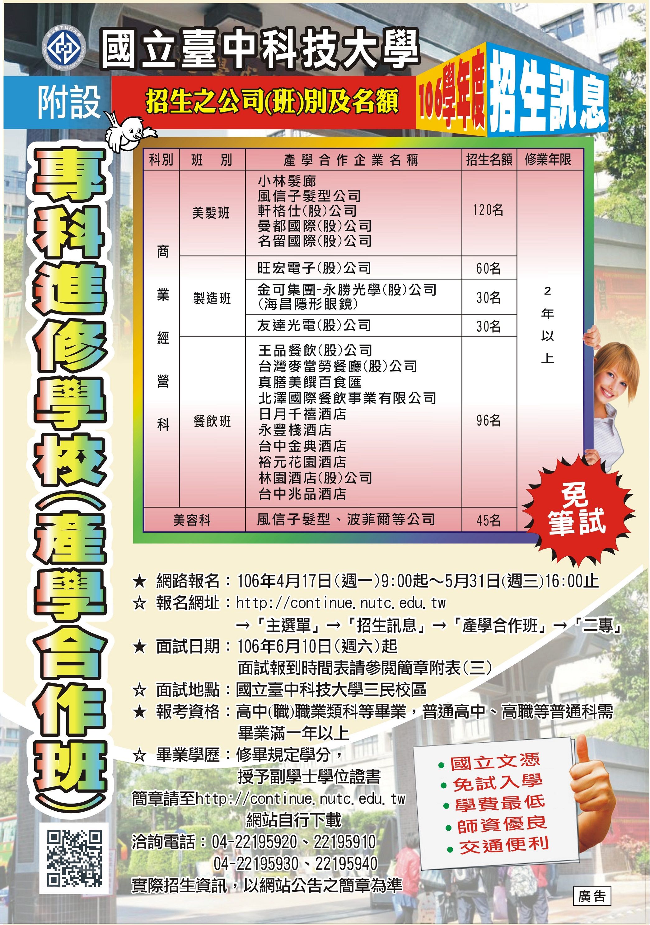國立臺中科技大學附設專科進修學校產學合作班招生宣傳