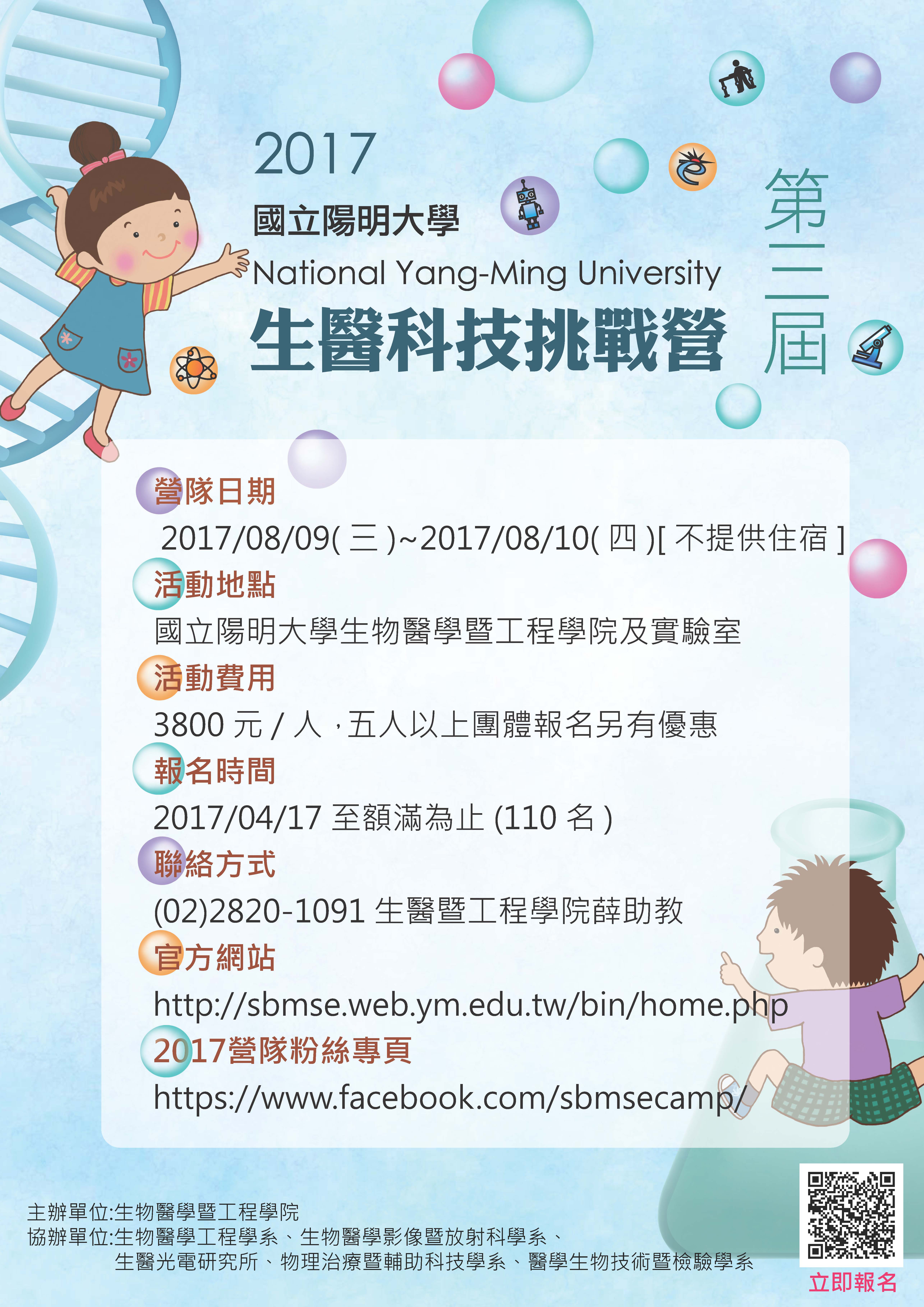 | 2017/04/25 國立陽明大學「第三屆國立陽明大學生物醫學暨工程學院生醫科技挑戰營」 |