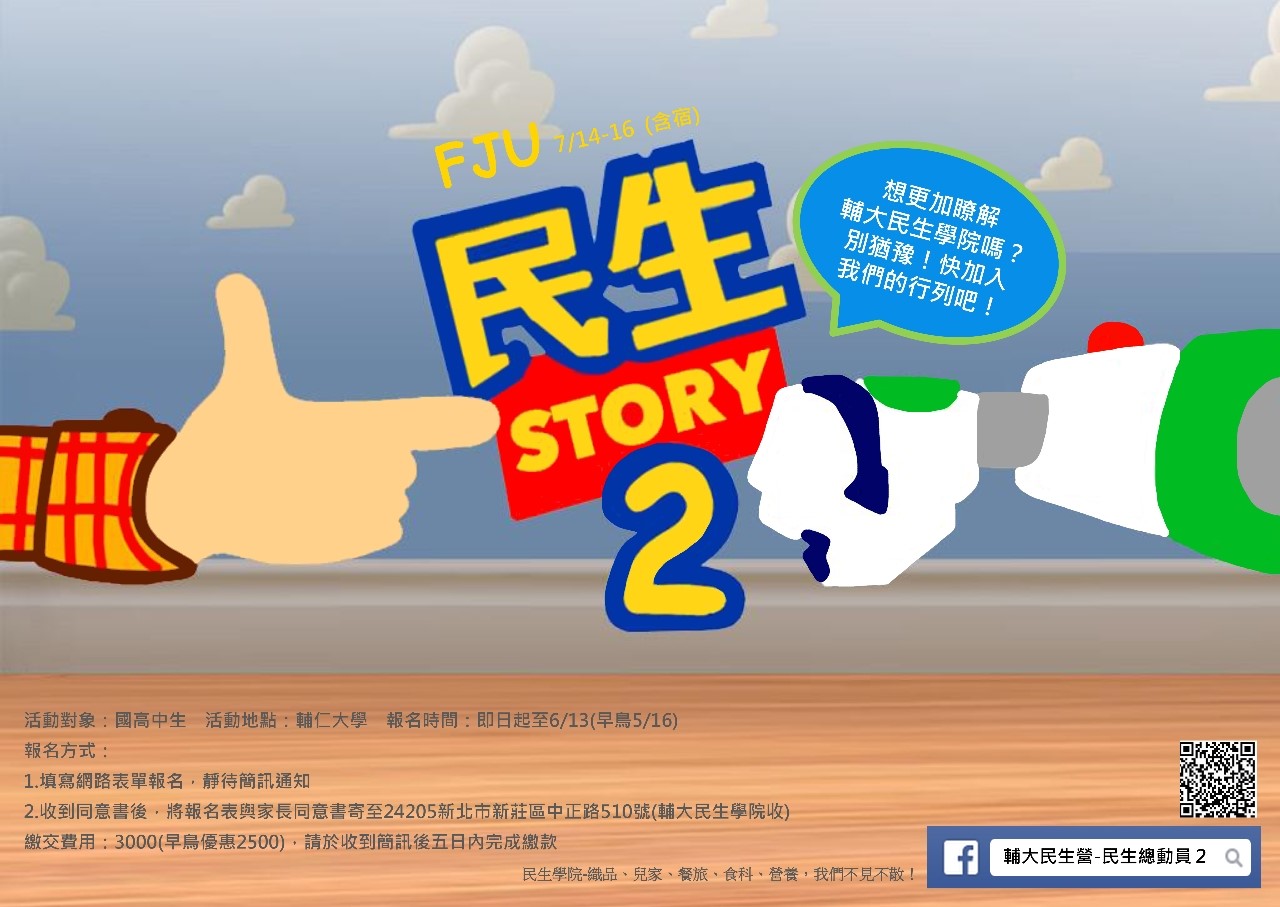 | 2015/05/07 輔仁大學舉辦「第二屆民生學院民生營」暑期營隊活動,請學生踴躍參加。 |