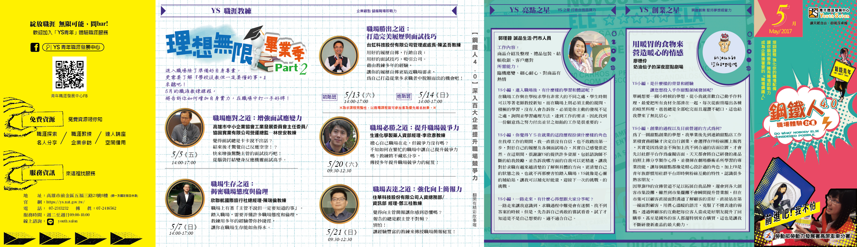 「青年職涯發展中心」106年5月活動DM,請同學踴躍參加。