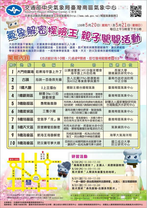 | 2017/05/11 中央氣象局臺灣南區氣象中心辦理「氣象解密探險王」親子闖關活動 |