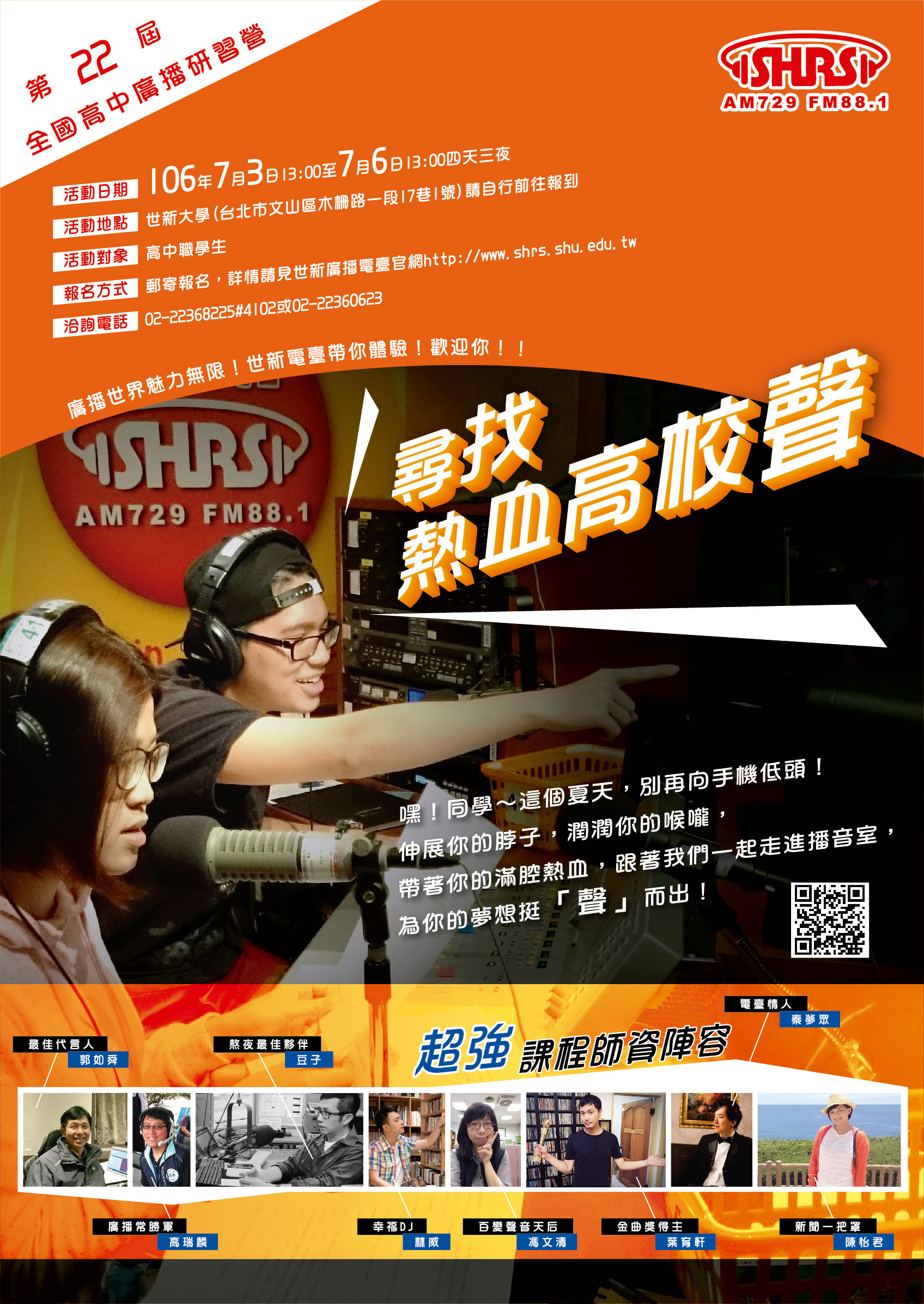 | 2017/05/11 世新大學舉辦「第22屆全國高中廣播研習營」及「第4屆廣電營【迷走星球】」 |