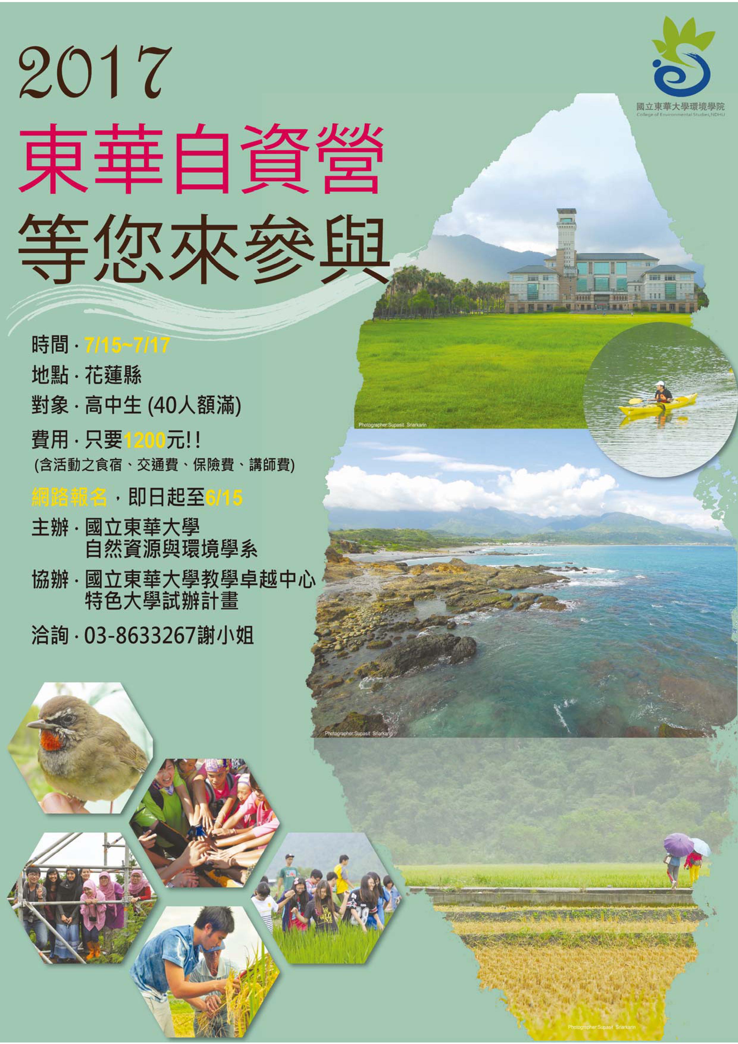 | 2017/05/16 東華大學自然資源與環境學系辦理2017暑期自資營 |