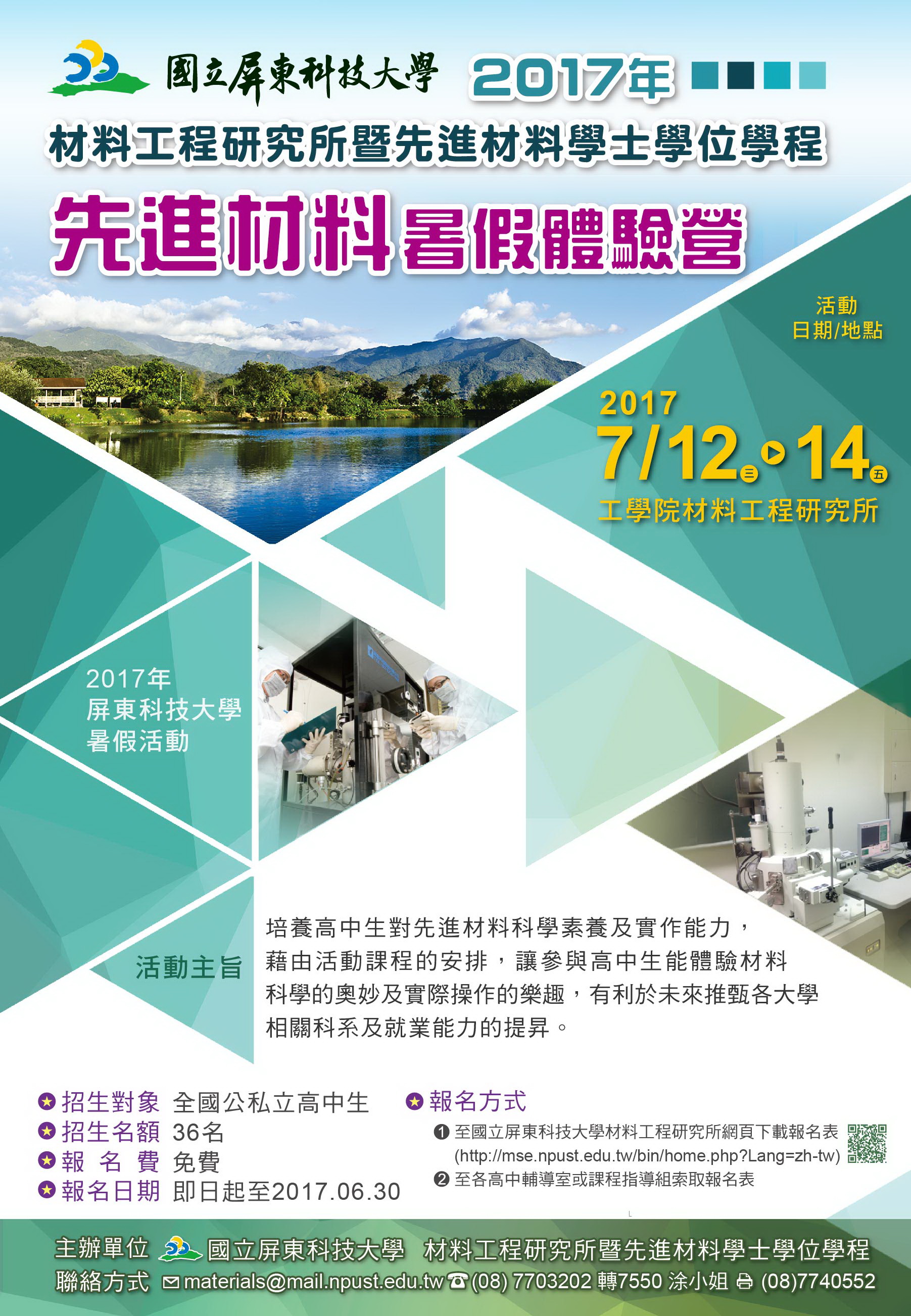 國立屏東科技大學辦理2017先進材料暑假體驗營