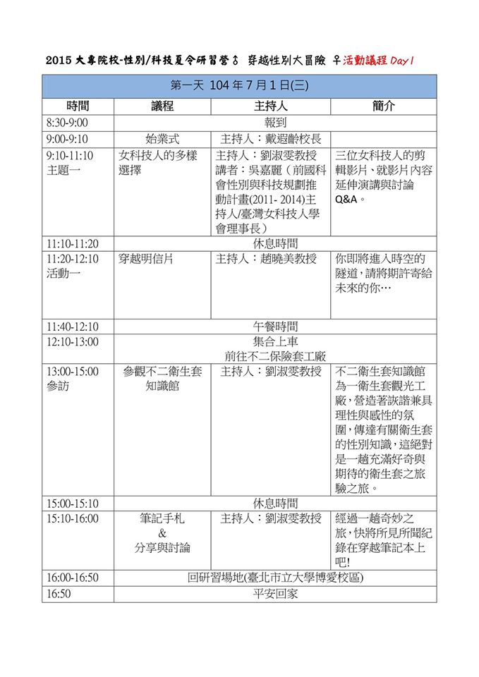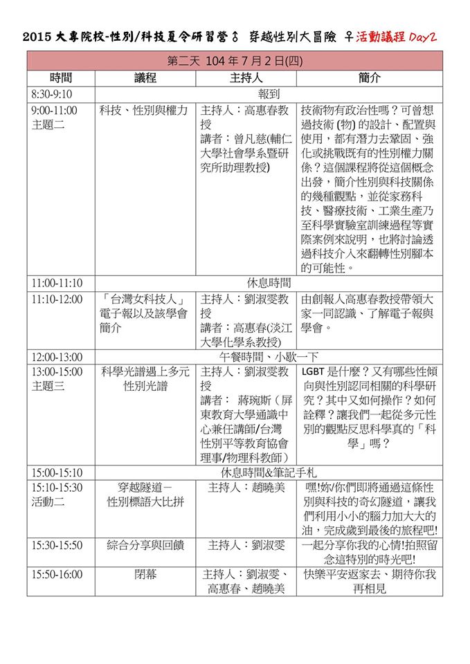 | 2015/05/12 2015性別/科技夏令研習營-穿越性別大冒險 |