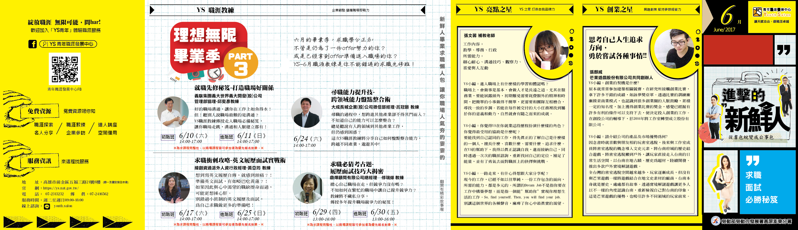 「青年職涯發展中心」(Youth Salon,以下簡稱YS)106年6月活動DM,請大家踴躍參加。