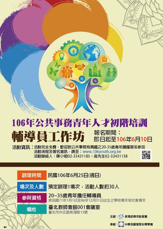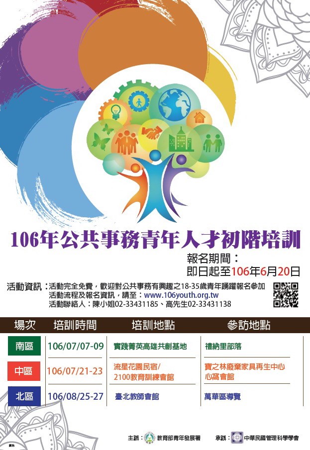 | 2017/06/13 教育部青年發展署「106年公共事務青年人才初階培訓計畫」 |