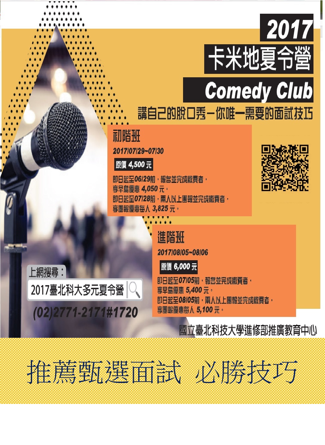 | 2017/06/14 國立臺北科技大學推廣教育中心開設「2017 YouTube 工作坊」及「Comedy Club 夏令營」 |