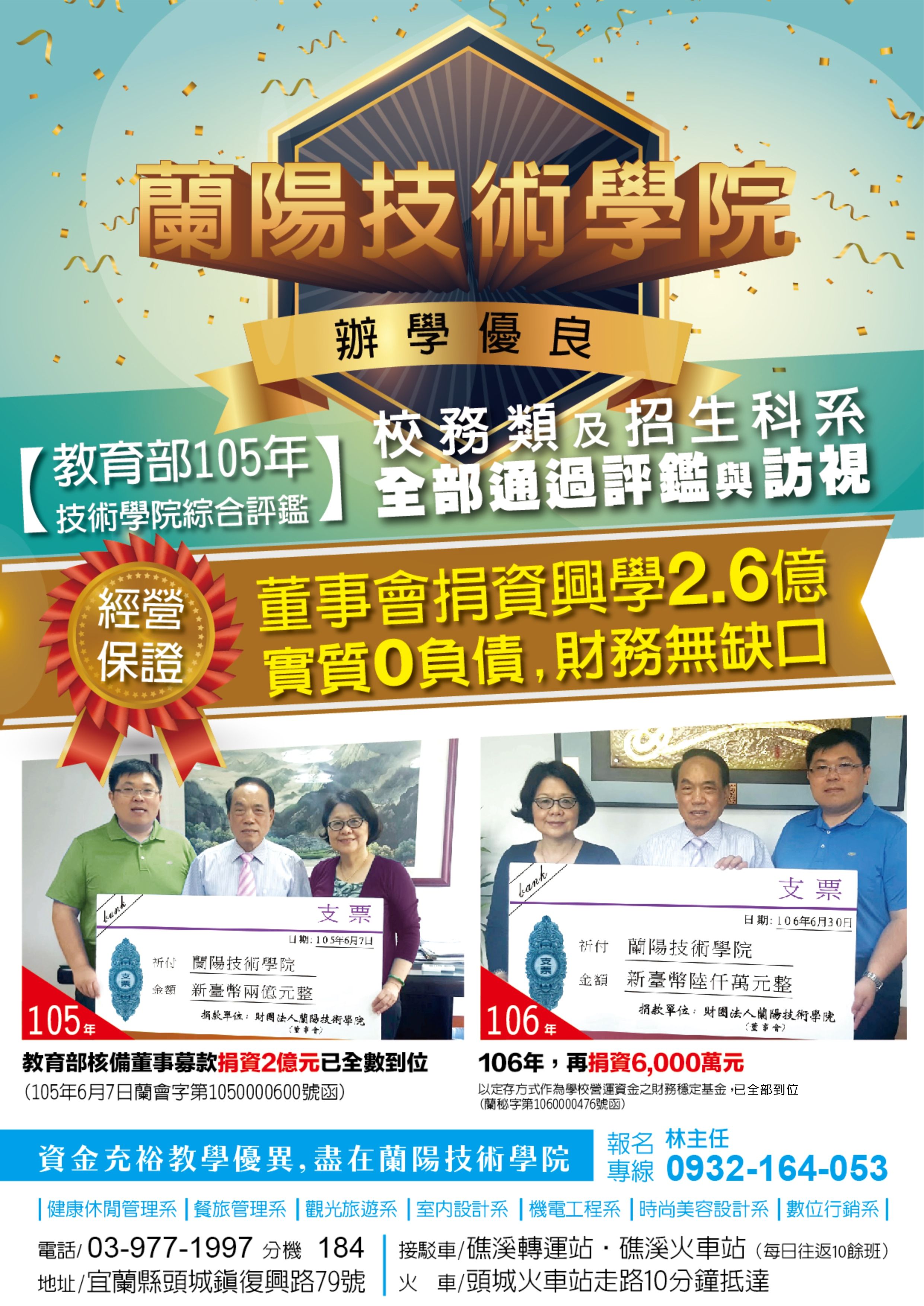 | 2017/06/28 蘭陽技術學院辦理106學年度日間部四技單獨招生 |