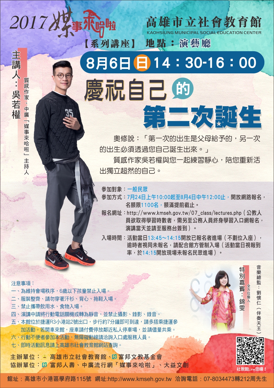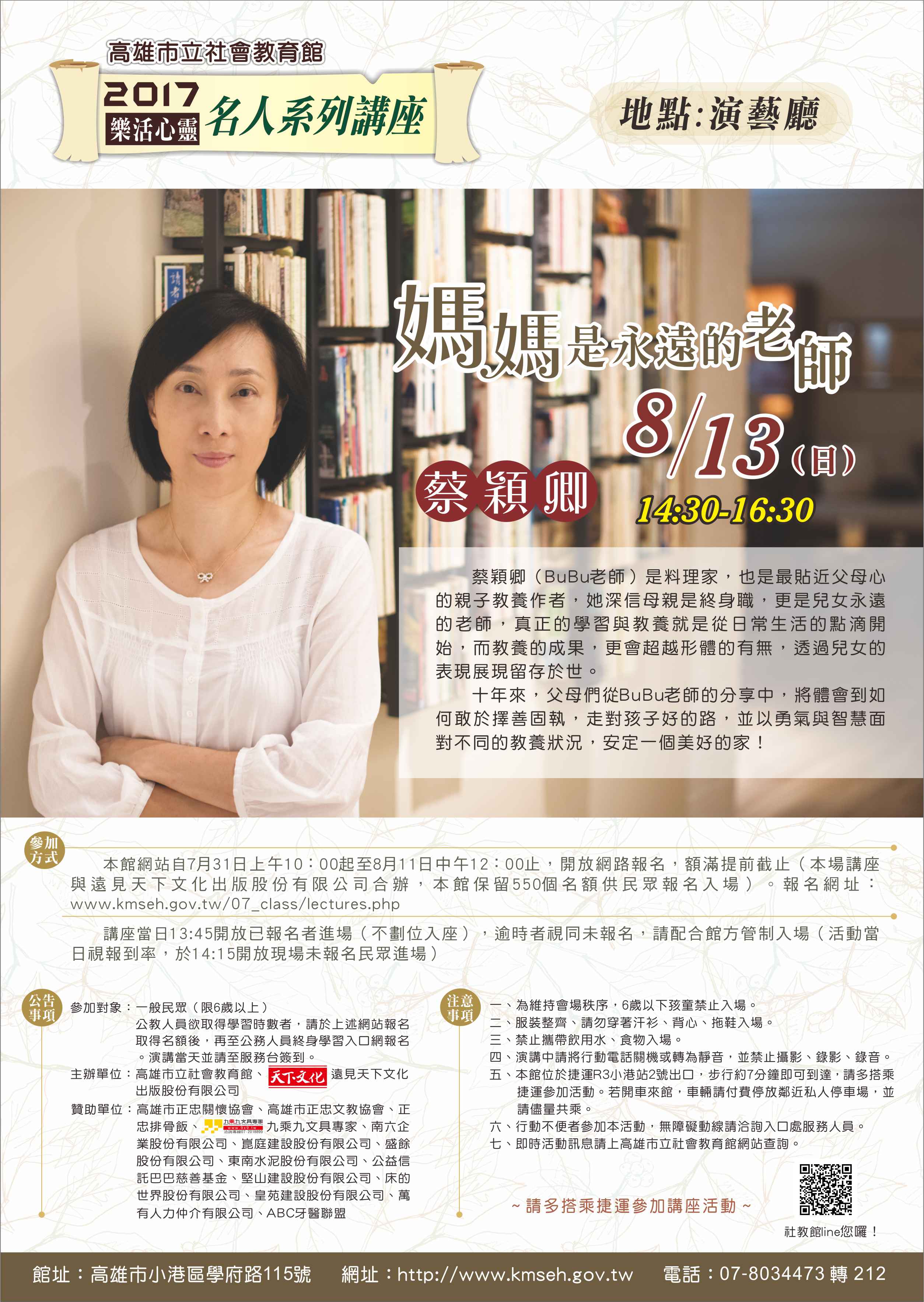 | 2017/07/21 高雄市立社會教育館「慶祝自己的第二次誕生」與「媽媽是永遠的老師」講座 |