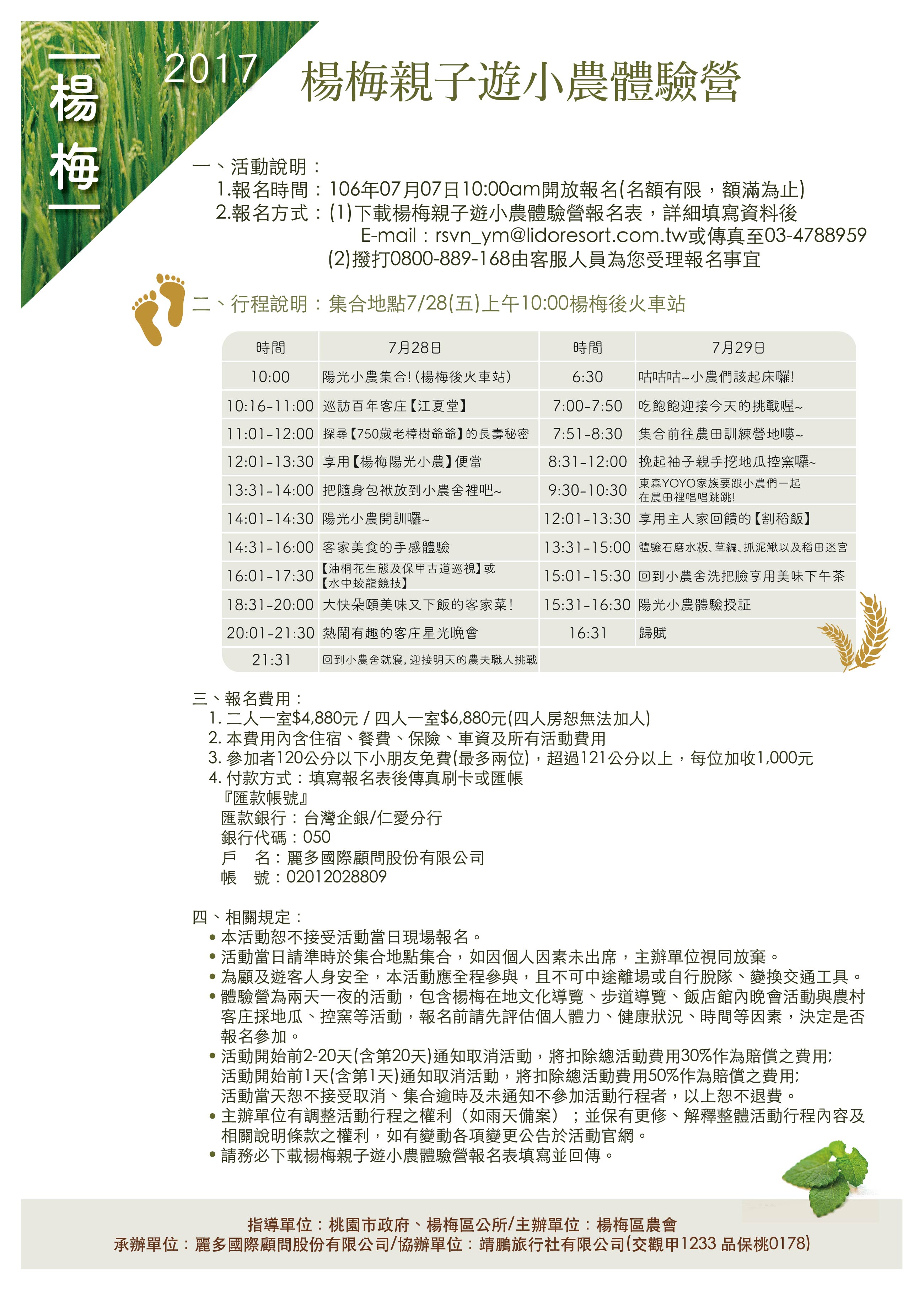 | 2017/07/21 桃園市楊梅區公所辦理「楊梅親子遊小農體驗營」活動 |