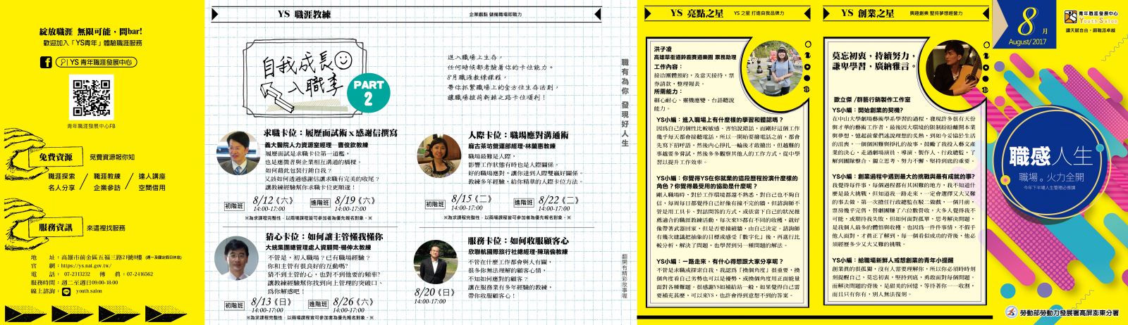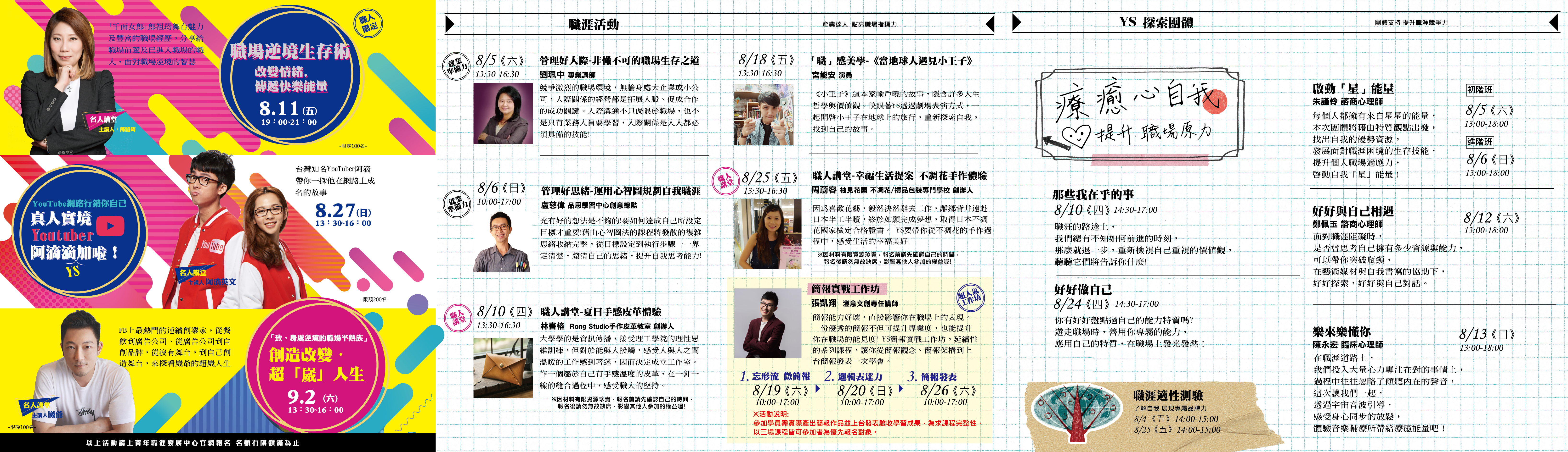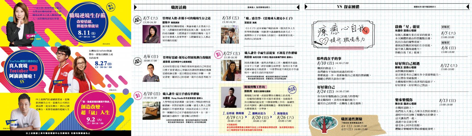 「青年職涯發展中心」(Youth Salon,以下簡稱YS)106年8月活動DM,請同學踴躍參加。