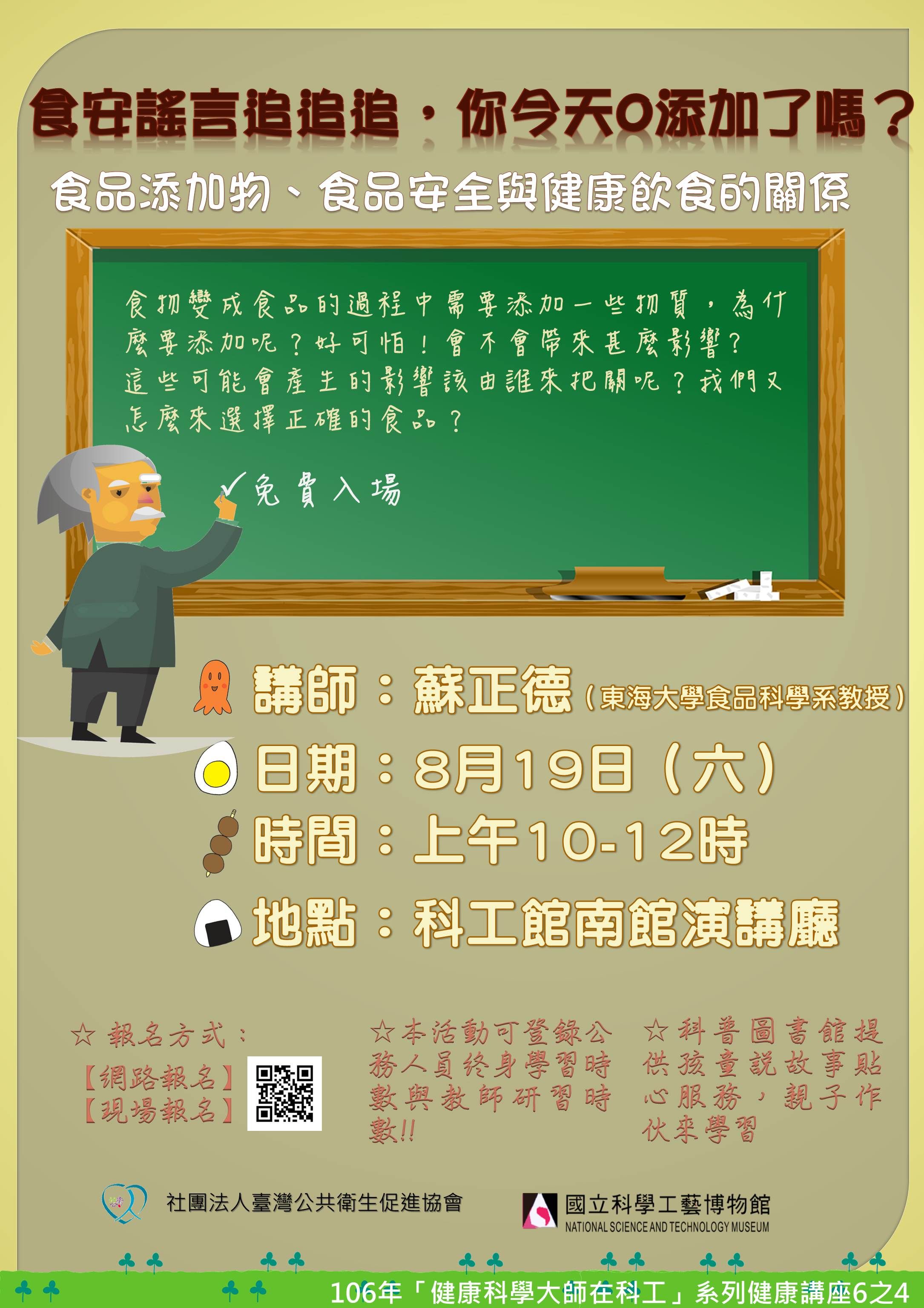 (五)講題:「食安謠言追追追,你今天0添加了嗎?」。