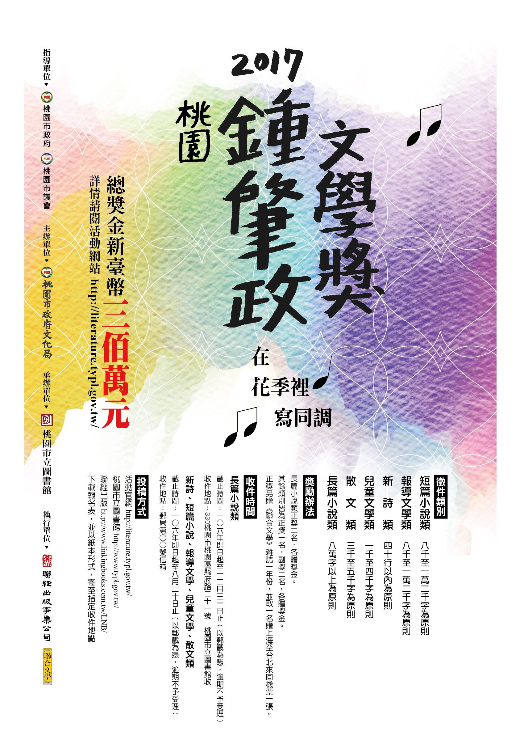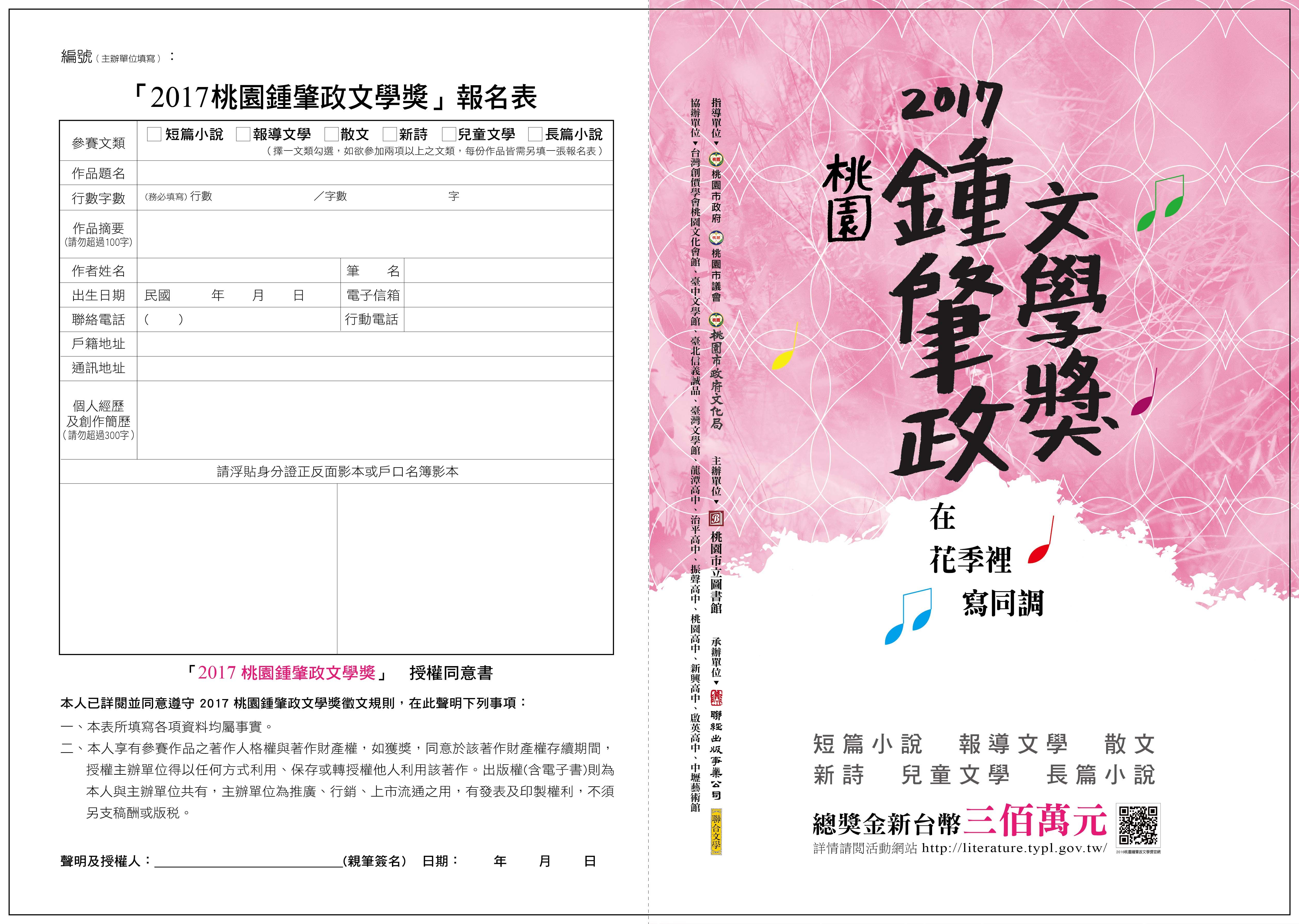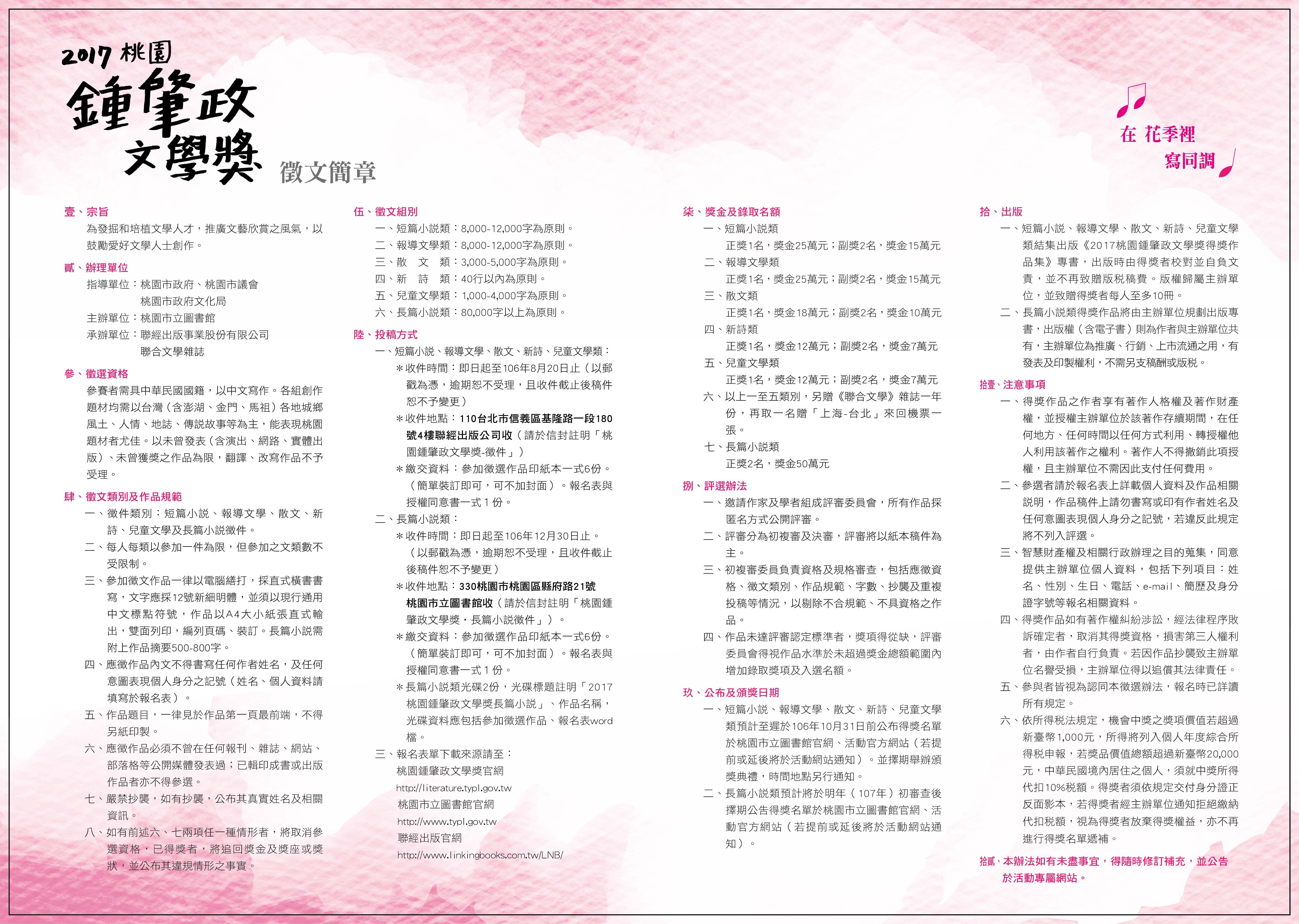 | 2017/08/14 桃園市立圖書館辦理「2017桃園鍾肇政文學獎」徵文活動 |