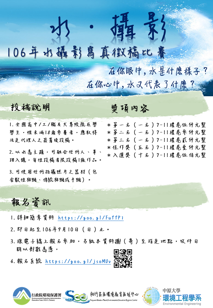 | 2017/08/17 轉知中原大學舉辦之「106年水攝影寫真徵稿」 |