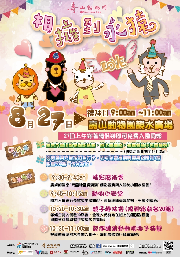 | 2017/08/21 轉知壽山動物園於106年8月27日舉辦之『相擁到永猿』情人節推廣活動 |
