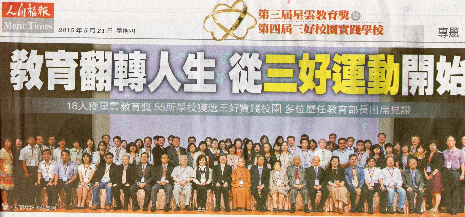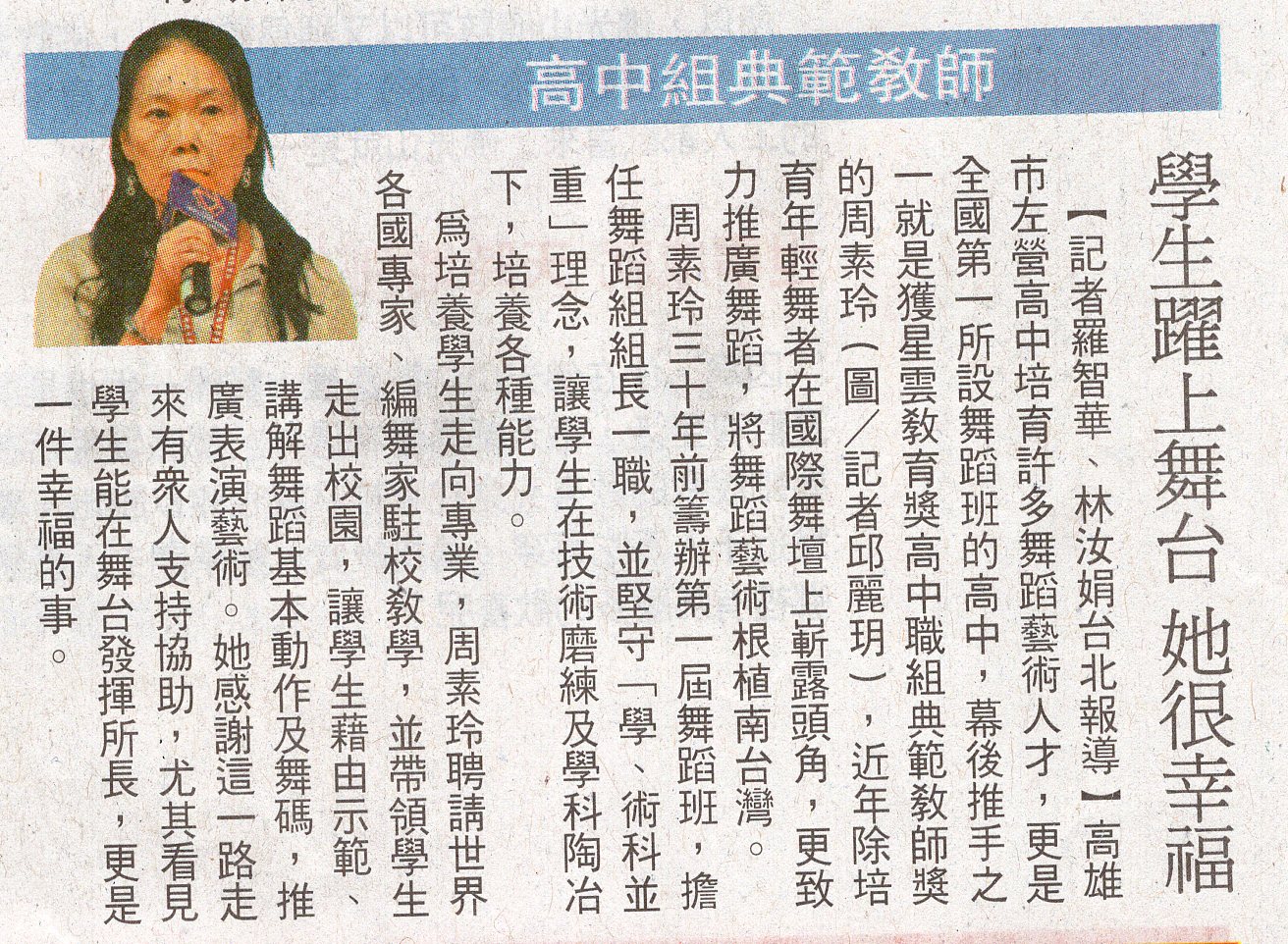 | 2015/05/22 欣賀 周素玲 舞蹈組長榮獲星雲教育典範教師獎 |