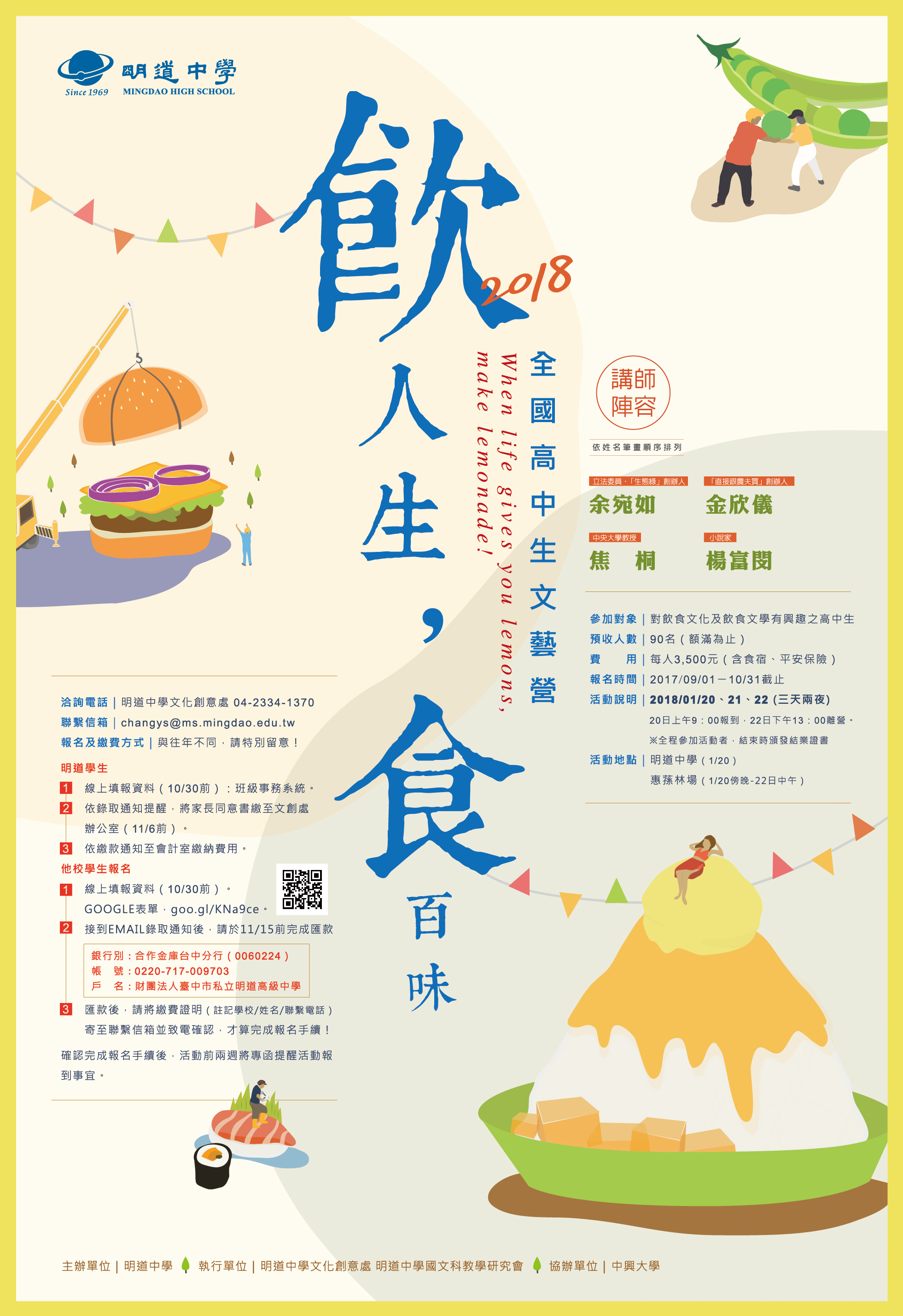 檢送明道高級中學辦理「2018全國高中生文藝營:飲人生,食百味」活動文宣