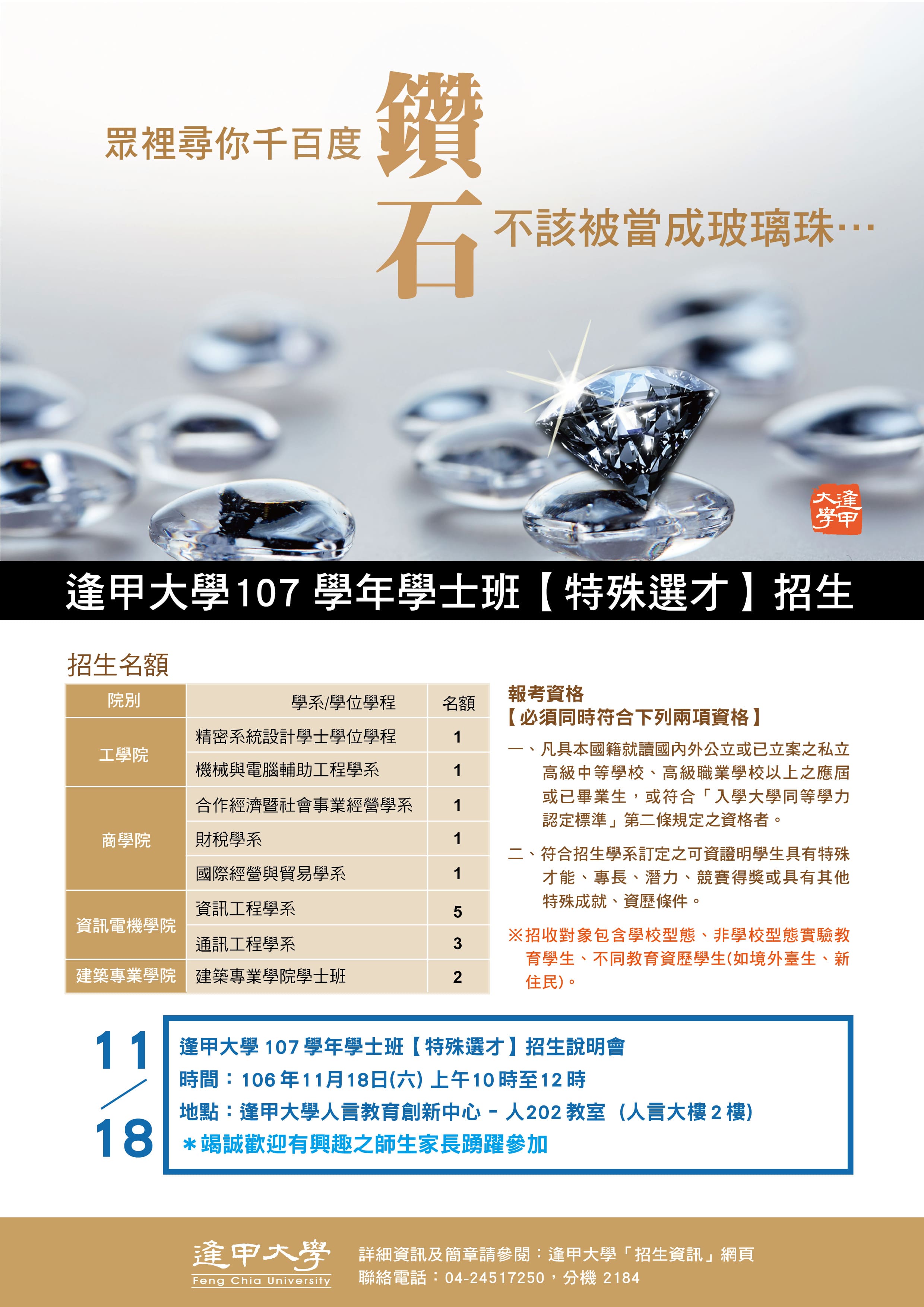 附加檔案:逢甲大學107 學年度學士班特殊選才招生海報.jpg (552.90 KB)