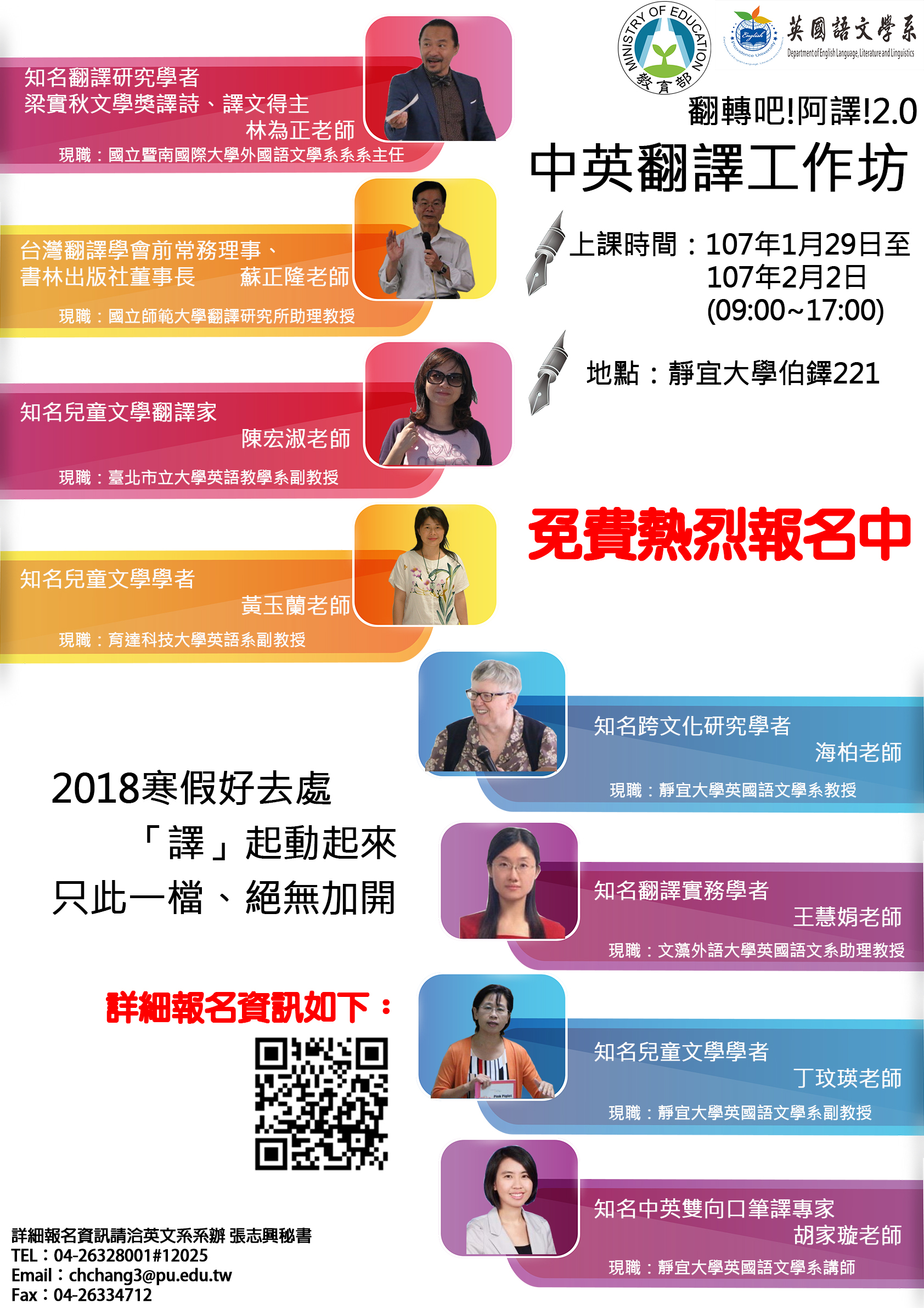 轉知靜宜大學辦理「106年度中英翻譯工作坊」