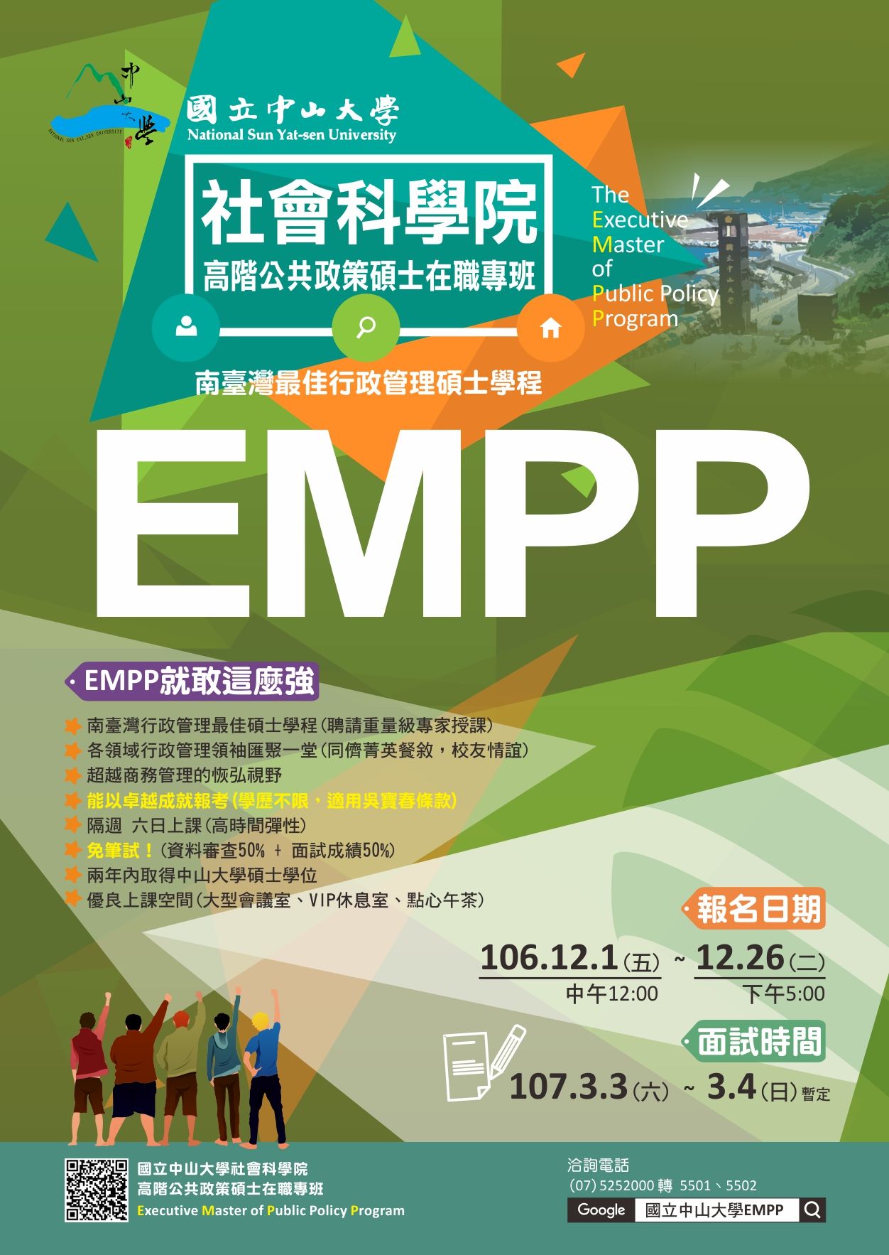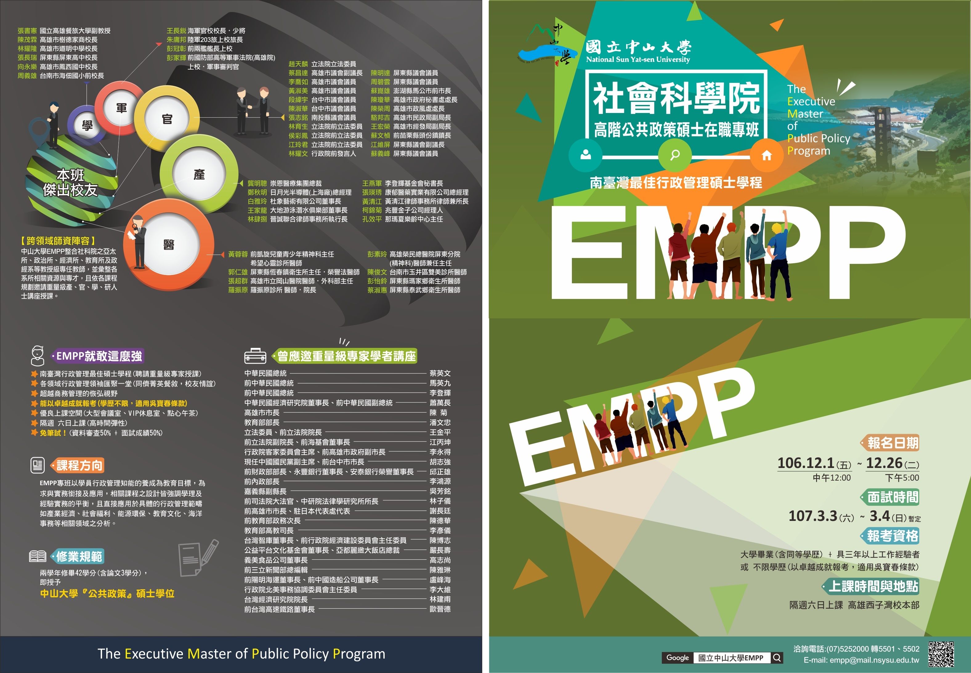 國立中山大學社會科學院高階公共政策碩士在職專班(EMPP)107學年度招生文宣